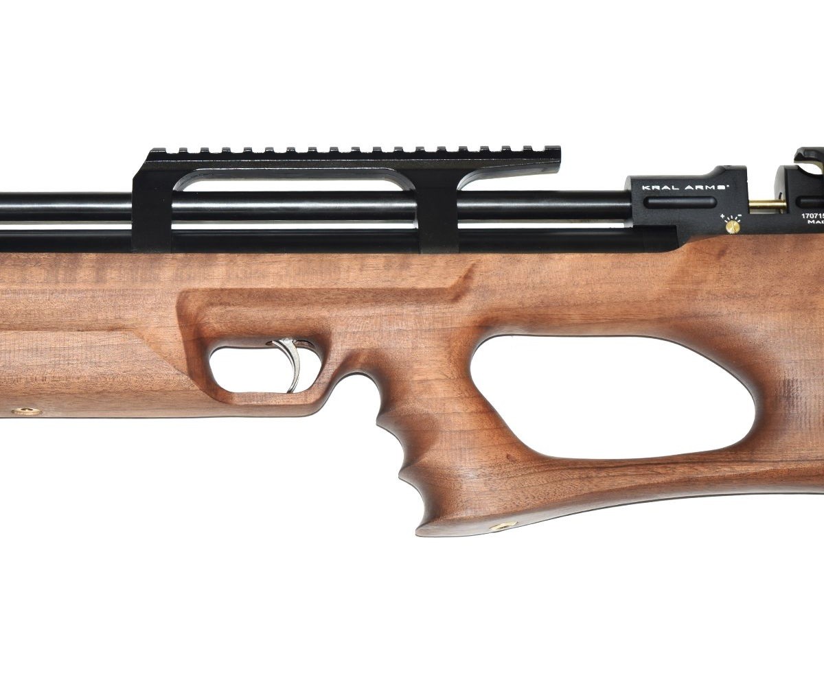 Для накачки используют ручной насос либо баллон для заправки. Удобство эксплуатации данной винтовки обеспечивает боковой (биатлонный) взвод и регулируемый механизм спуска. Калибр используемых пуль для пневматики – 4,5 мм. Магазин-барабан вмещает 14 пуль. Скорость пули составляет до усиления 120 м/с, после усиления – до 380 м/с. С заводскими настройками винтовка Крал Панчер Брейкер имеет дульную энергию менее 3 Дж, что позволяет свободно приобрести ее всем желающим.