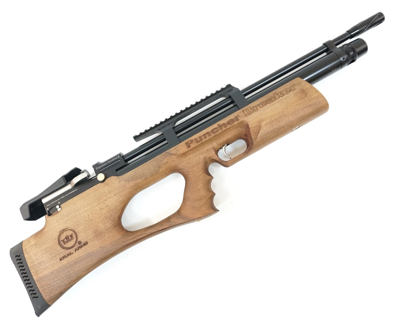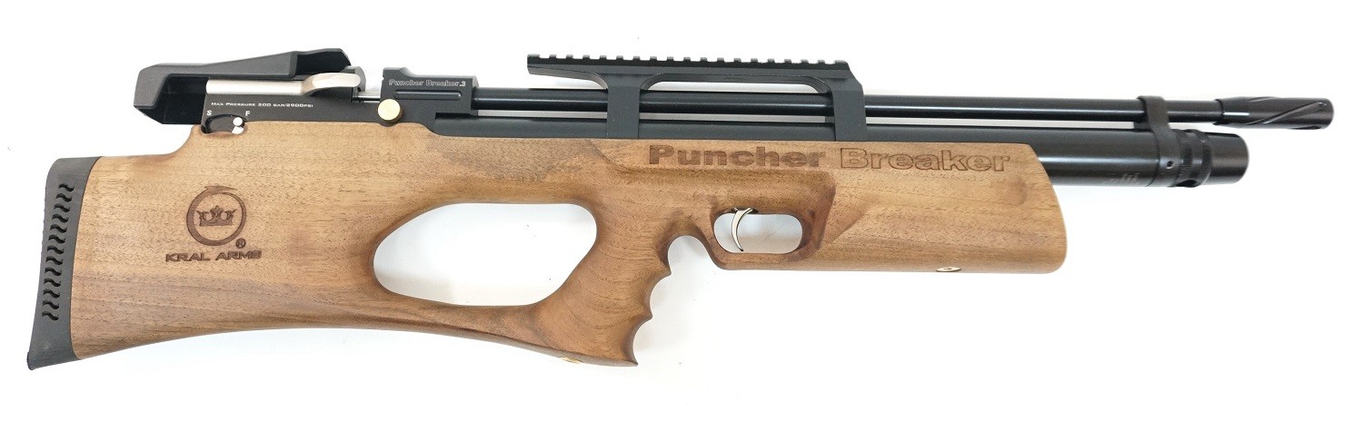 Винтовка Крал Панчер Брекер 3W имеет приклад типа «булл-пап», за счет чего оружие имеет небольшую длину, при этом без ущерба для качества стрельбы. Предусмотрена планка для установки оптического или коллиматорного прицела. Ствол винтовки нарезной. При изготовлении данной модификации использовано натуральное дерево (ложе) и качественный металл. Общая длина винтовки – 73 см при длине ствола в 53 см, вес – 3,4 кг. В комплекте с винтовкой два магазина, штуцер для заправки резервуара и паспорт.