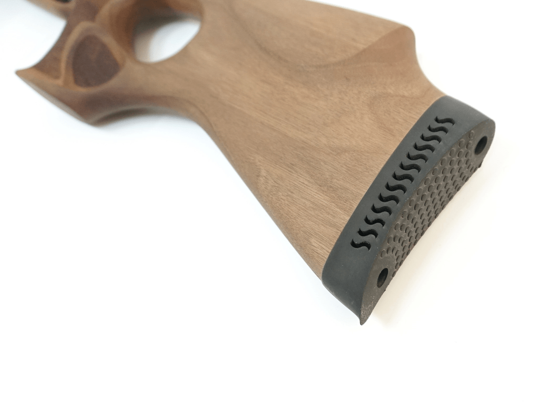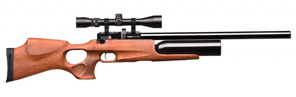Maxi Auto – PCP-модель с резервуаром 425 куб. см, заполненным воздухом с высоким давлением. После установки усиленной пружины винтовка стреляет со скоростью 300 м/с. Ствол калибра 5,5 мм выполнен из оружейной стали, благодаря винтовым насечкам показывает хорошую точность и кучность выстрела. Есть возможность установки «модератора» Puncher Breaker 3 путем накручивания на конец ствола, с этой задачей справится даже новичок.