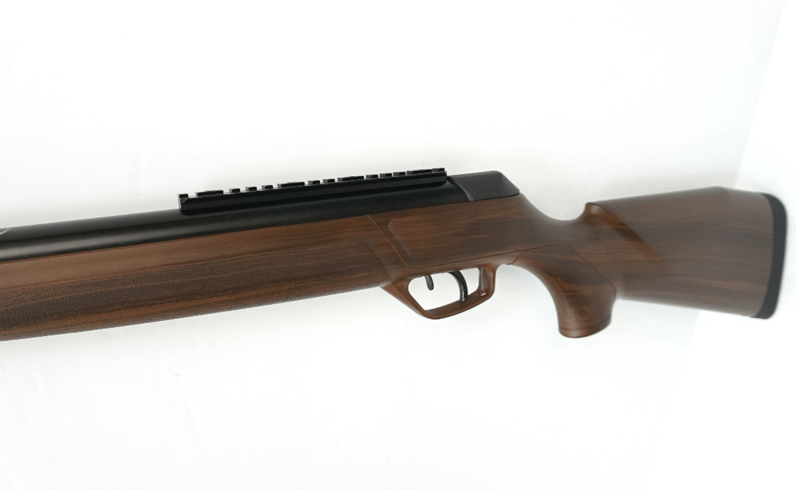 – это очень красивая и практичная модификация, пружинно-поршневая переломка с приемлемой стоимостью. Винтовка однозарядная, стреляет пулями калибра 4,5 мм. Выстрел обеспечивает витая стальная пружина, сжимаемая рычагом (в данном случае функцию рычага выполняет ствол оружия). Под действием энергии пуля получает скорость, равную 170 м/с.