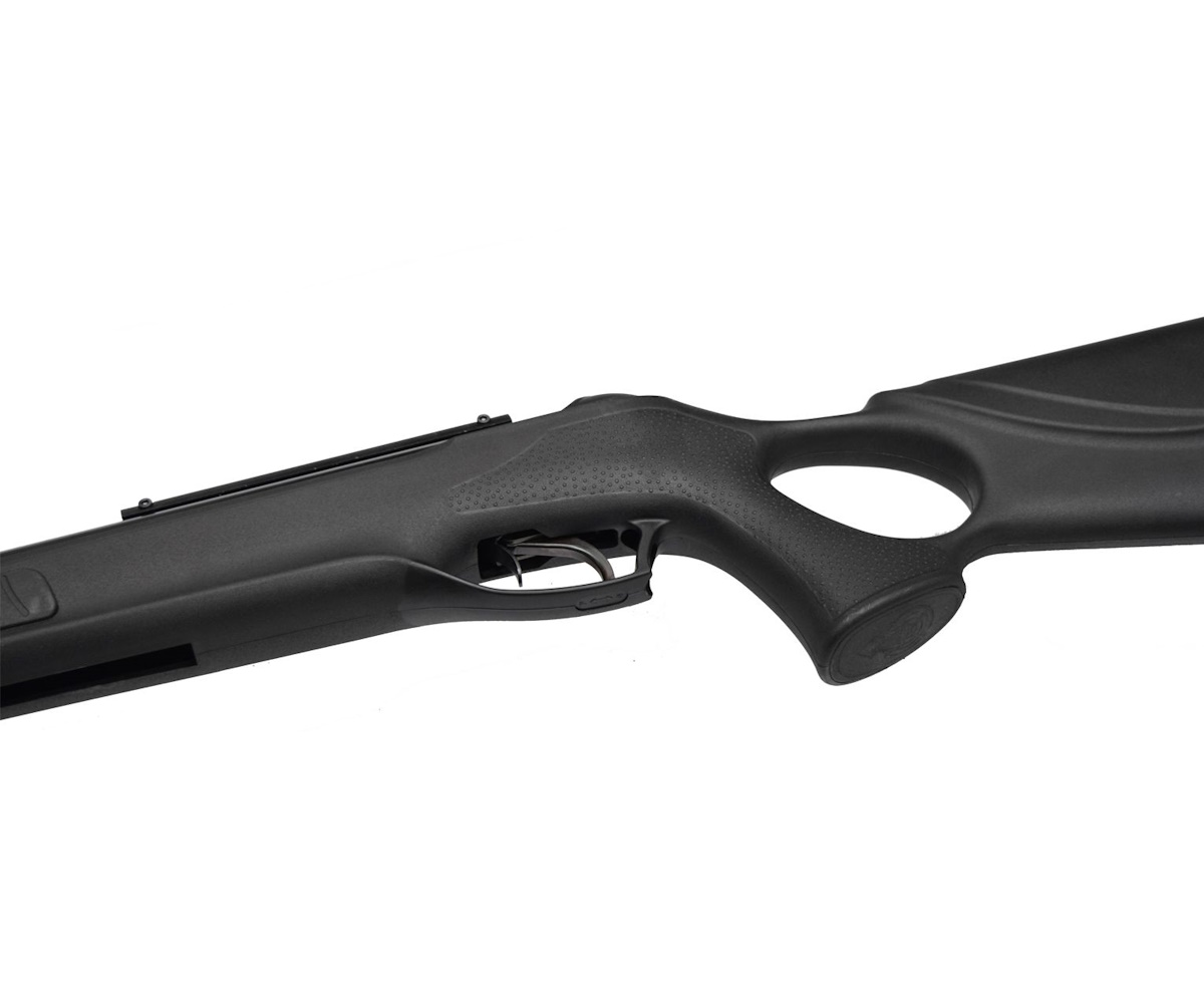 Предназначена для ведения охоты, спортивных соревнований и домашнего использования. Изготовлена из ударостойкого пластика повышенной прочности, что защищает ее от коррозии и гниения. Работает по пружинно-поршневому принципу, взводится переломным способом. В конструкции предусмотрен усиленный металлический штифт (в месте перелома). С завода оснащается стандартным прицелом открытого типа (целик и мушка). Для установки дополнительной оптики предусмотрена планка «ласточкин хвост». Дополнительный комфорт при стрельбе обусловлен формой ложа и наличием рукояти пистолетного типа. Данный параметр облегчает давление, оказываемое на руку, позволяя ей меньше уставать во время стрельбы. Огонь ведется свинцовыми пулями калибра 6,35 мм. Благодаря симметричной конструкции, модель удобна для леворуких и праворуких стрелков.