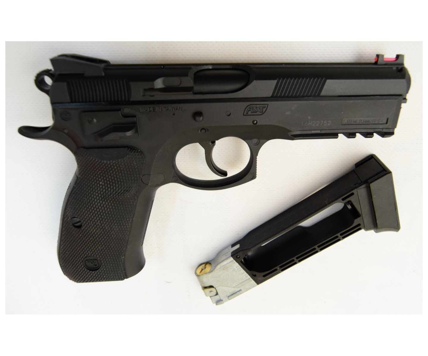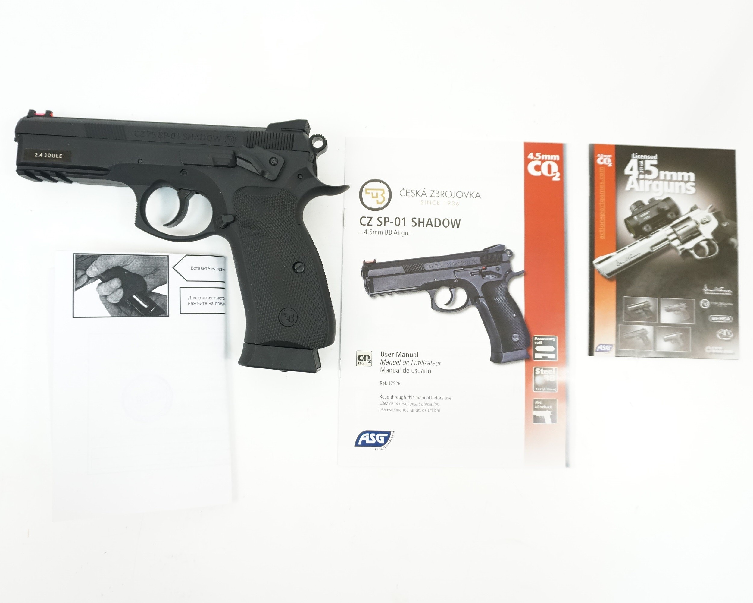 Пистолет ASG CZ SP-01 Shadow имеет отношение к новейшим пневматическим пистолетам. Изделие может применяться на тренировках за ограждением тира либо стрельбища, для холощения в качестве замены реального пистолета.
