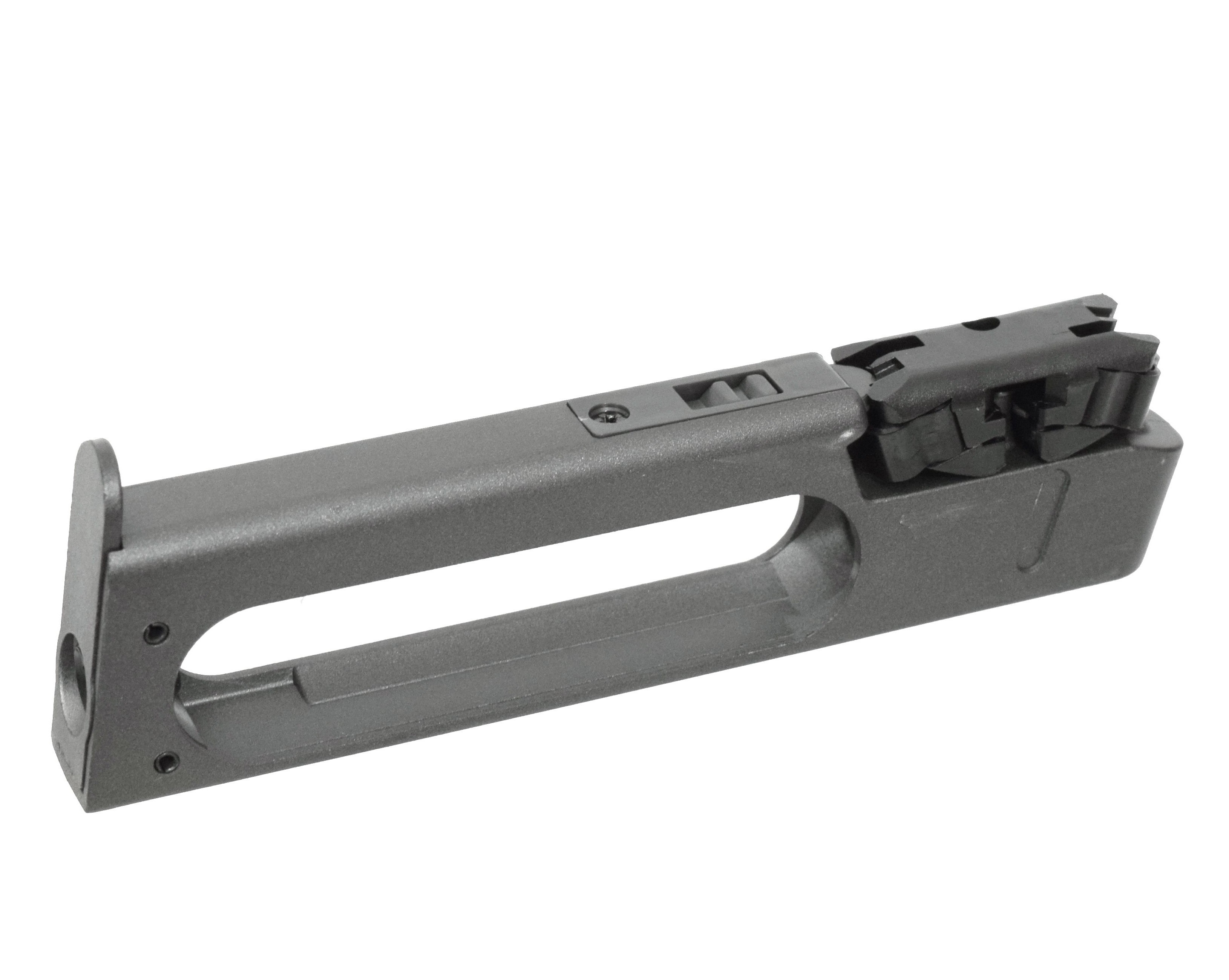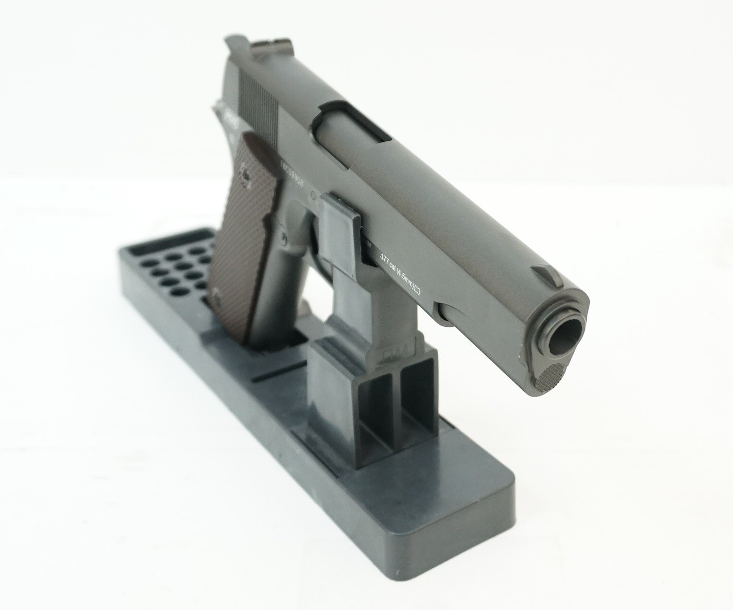 Мощность пистолета в 2,3 Дж обеспечивает ему скорость выстрела в 100 м/с. Здесь возможен исключительно полуавтоматический режим огня, причем после отстрела первых шести зарядов необходимо извлечь магазин, перевернуть его барабан и продолжить стрельбу. Отметим, что автоматический предохранитель тыльной части рукоятки несет только декоративную нагрузку, а работающий двухпозиционный флажковый предохранитель расположен на рамке. Ствол с нарезами внутри повышает результативность выстрелов.