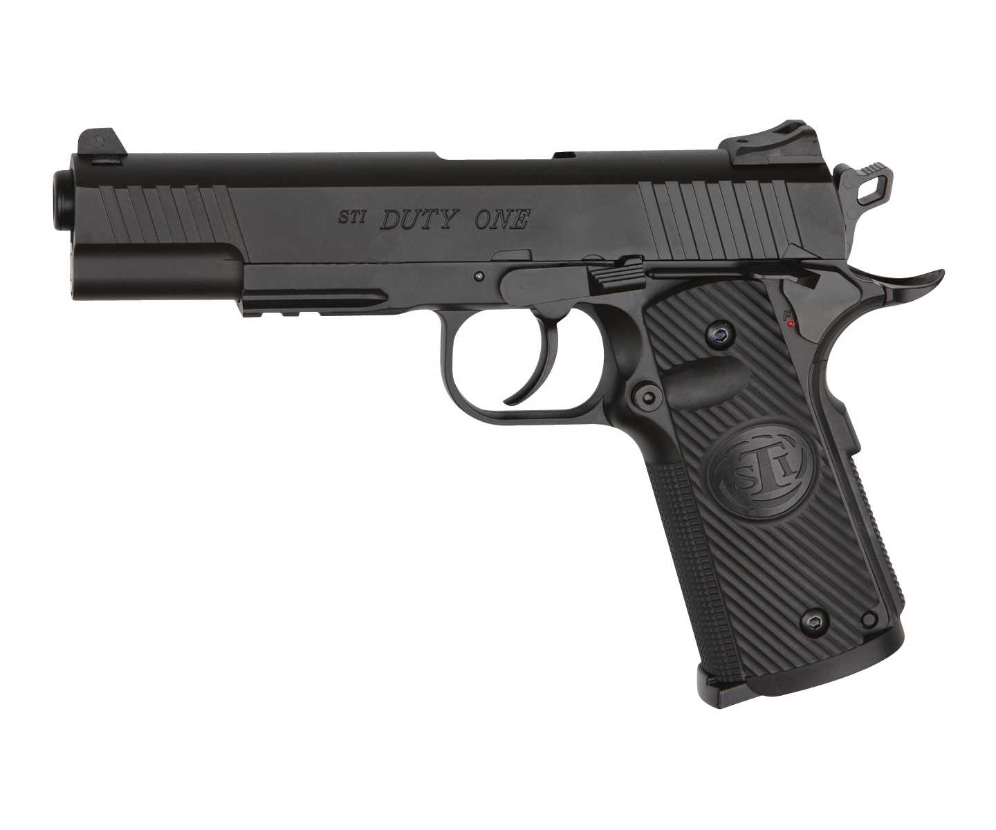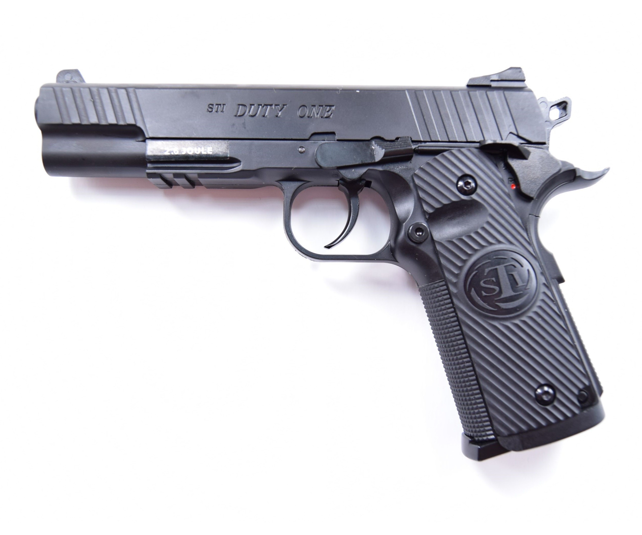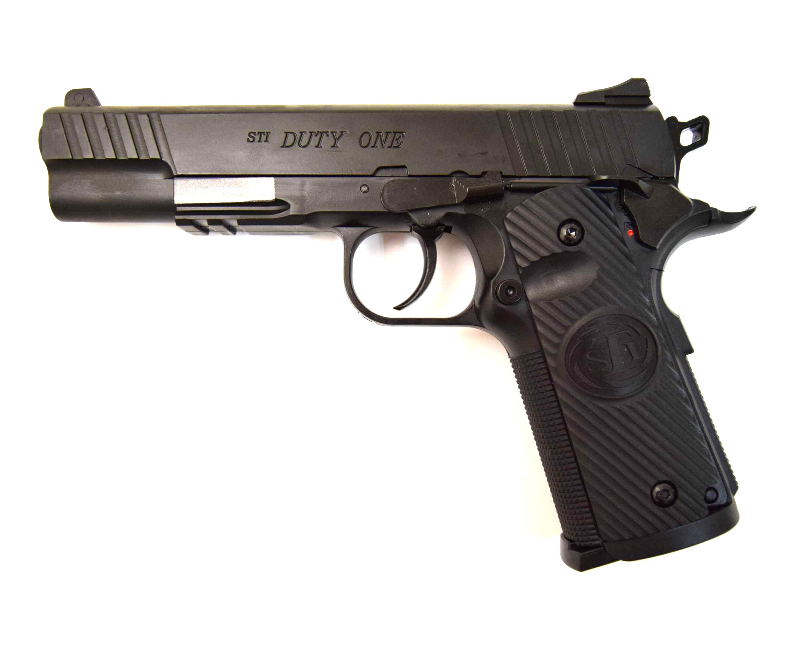 Явное отличие газобаллонного пистолета от своего боевого прототипа заключается в форме спускового крючка. В боевой модели Duty One, как и у большинства моделей являющихся подражанием легендарному Colt-1911, спусковой крючок имеет плоскую пластинчатую форму, в то время как пневматический STI Duty One оснащен спусковым крючком классического типа.
