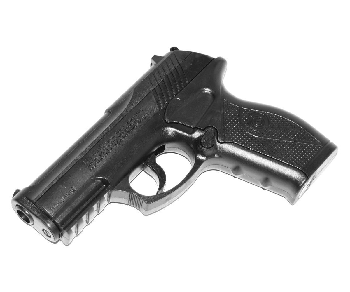Кросман С11 оснащен удобной рукояткой, которая хорошо лежит в руке и не выскальзывает благодаря рифлению.