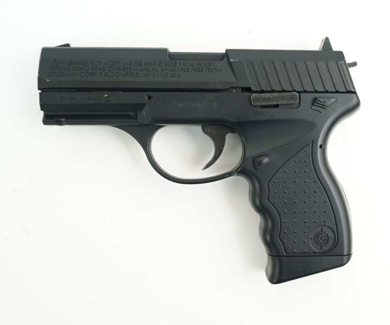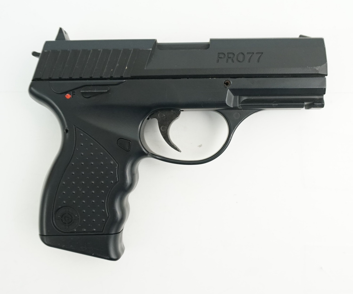 Crosman PRO77CS имеет первоначальную скорость пули 120 м/с. Это модель пистолета выполнена согласно новым стандартам оружия, т.е. ствол, затвор, механизмы и основа сделаны из оружейной стали, а корпус - из ударопрочного пластика. Потому масса пистолета Crosman PRO77 - всего 600 г. Правда, его немного сложно удерживать в одной руке из-за отдачи.