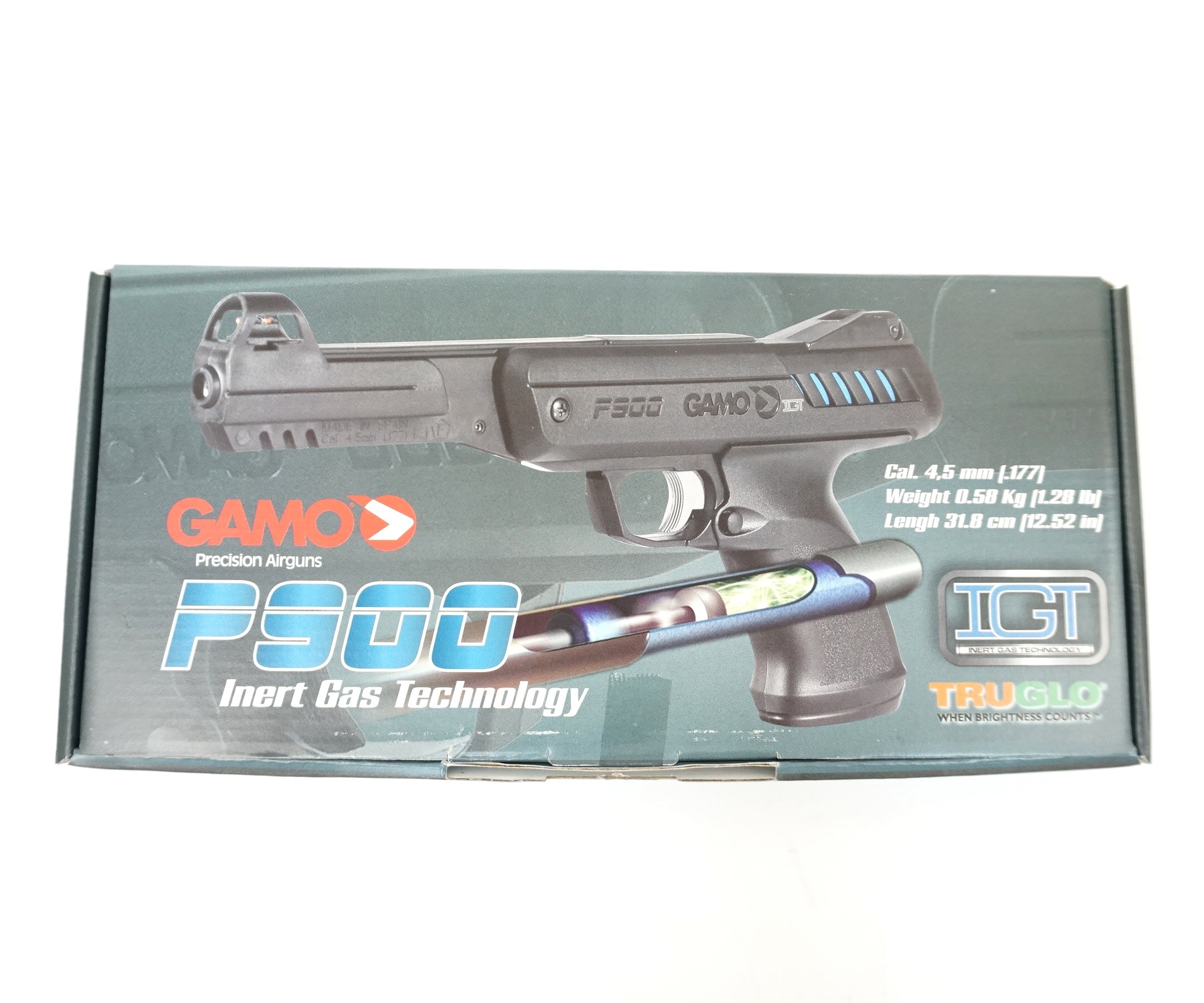 При вылете из ствола газовая пружина сообщает пуле скорость не менее 120 м/с. Ствол нарезной, удлиненный, что обеспечивает хорошую прицельность стрельбы. Стреляет пистолет одиночными выстрелами, УСМ одиночного действия. Предохранитель неавтоматический кнопочного типа. Так как дульная энергия Gamo P-900 IGT не более 3 Дж, он разрешен для свободной продажи.