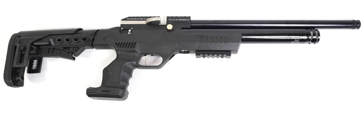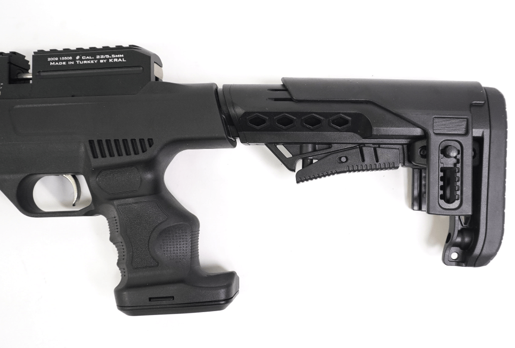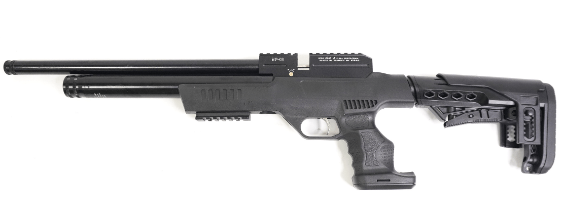 Пневматический пистолет Kral Puncher NP-03 (PCP) – это разработка известного турецкого производителя, пневматика с предварительной накачкой, отличающаяся использованием телескопического приклада. Изделие имеет довольно внушительные габариты, как и большинство модификаций пневматики такого типа. Компрессионный баллон со сжатым воздухом располагается под стволом пистолета, объем его 105 куб. см., максимальное давление 200 бар.