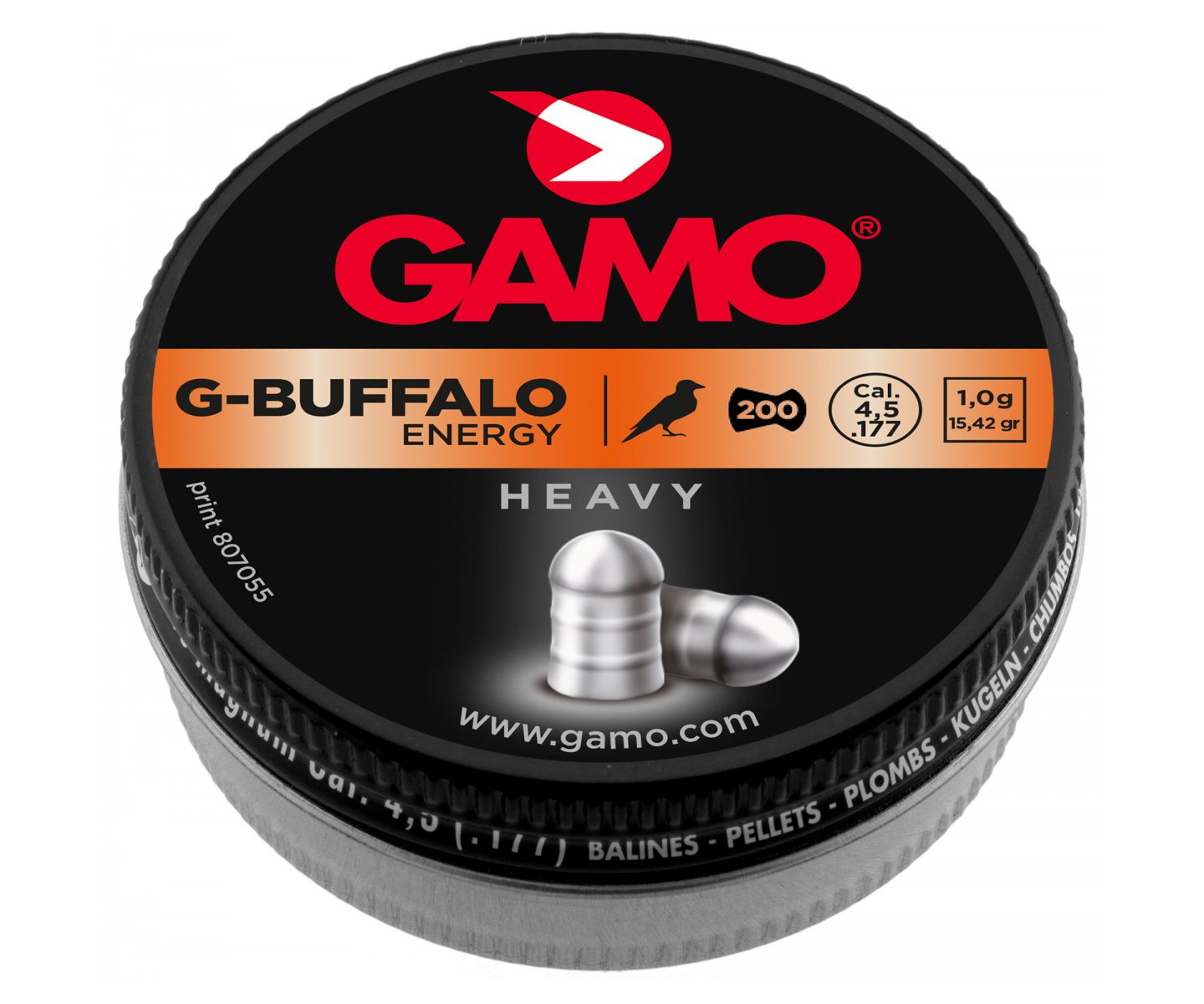 Gamo G-Buffalo предназначены для спортивной стрельбы и охоты на средних и дальних дистанциях. Количество пуль в банке - 200 штук средним весом 1,0 грамм.