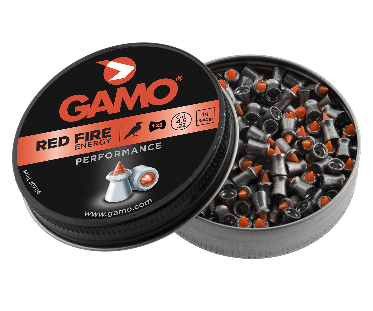 Пули Gamo Red Fire обладают улучшенными аэродинамическими показателями за счёт заостренной головной части. Пули имеют высокую пробивную способность и скорость. Полимерный наконечник с повышенной пробивающей способностью и свинцовая основа для максимального поражения. Количество 125 штук весом 0,51 грамм.