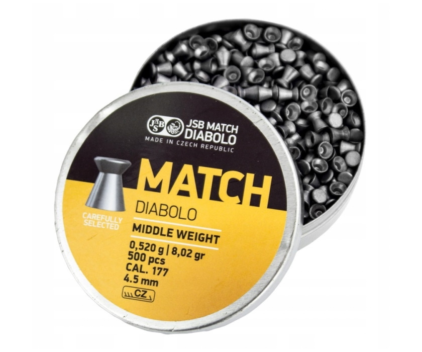 Пули JSB Yellow Match Diabolo калибра 4,5 мм - плоскоголовые пули, специально разработанные пули для спортивной и тренировочной стрельбы. Диаметр головной части 4,52 мм, в банке 500 штук. Эти пули универсальные и точные. Предназначены для соревнований, оставляют след на бумаге в виде идеально ровного круга.