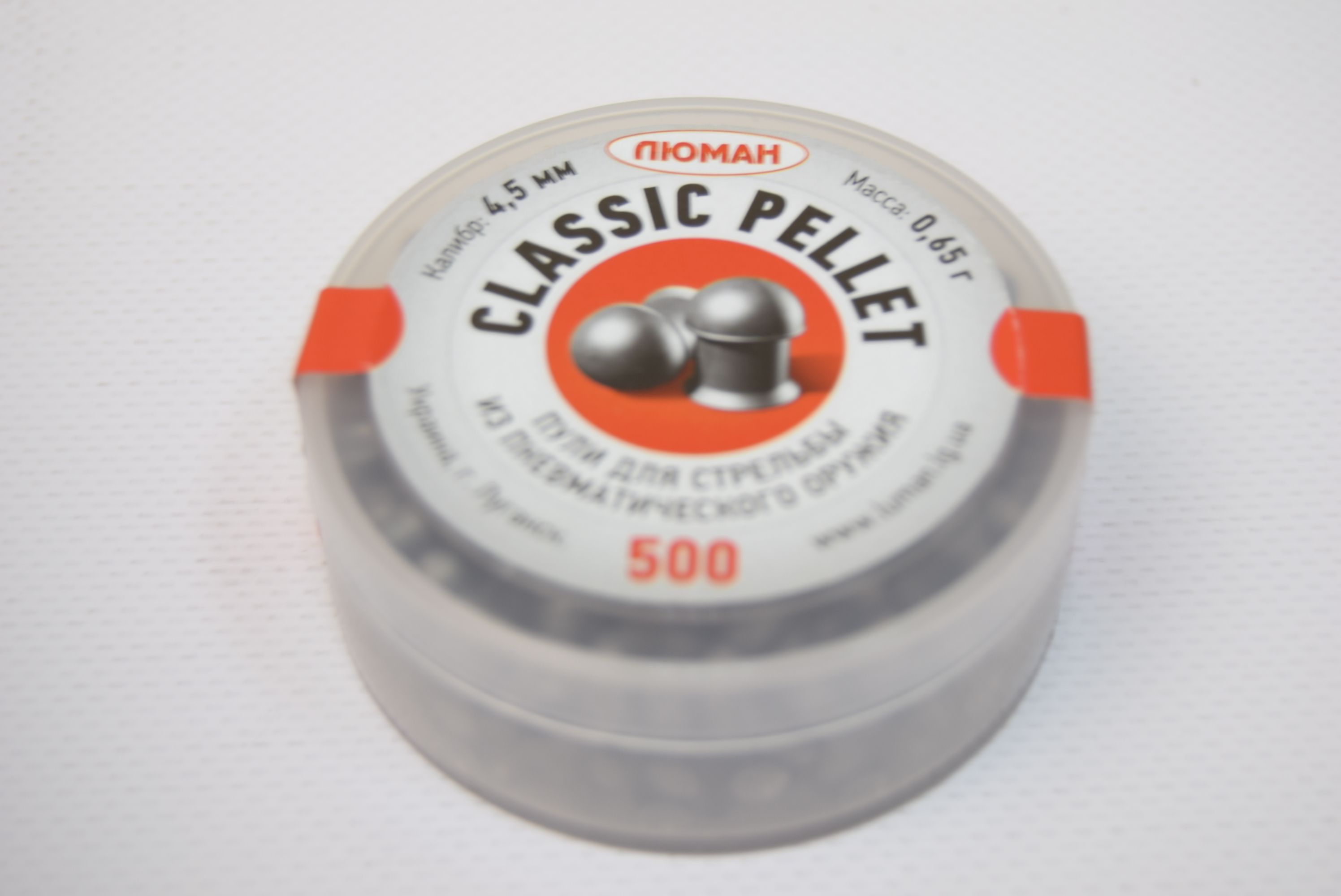 Пули Люман Classic Pellets 0,65 г - утяжеленные круглоголовые пневматические свинцовые пули. Предназначены для развлекательной стрельбы и field target из пневматики на дистанциях до 25 метров. Калибр - 4,5 мм. Упаковка - пластиковая банка 500 шт.