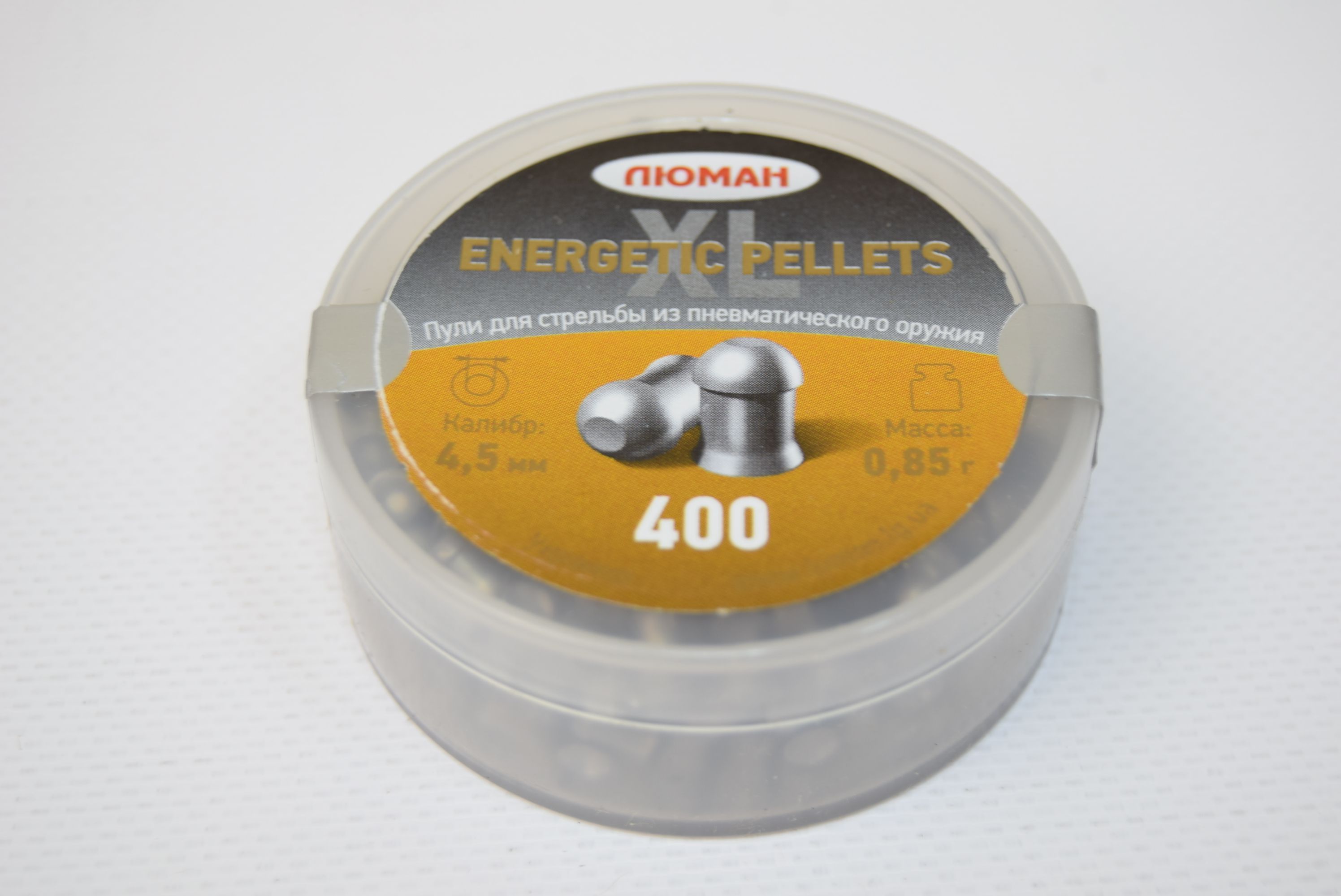 Пули Люман Energetic Pellets XL 0,85 г - утяжеленные круглоголовые свинцовые пули со скошенной частью, подходят для мощных пневматических винтовок магнум-класса. Прекрасные баллистические показатели. Предназначены для охоты и field target на дистанциях до 50 метров. Калибр - 4,5 мм. Упаковка - пластиковая банка 400 шт.