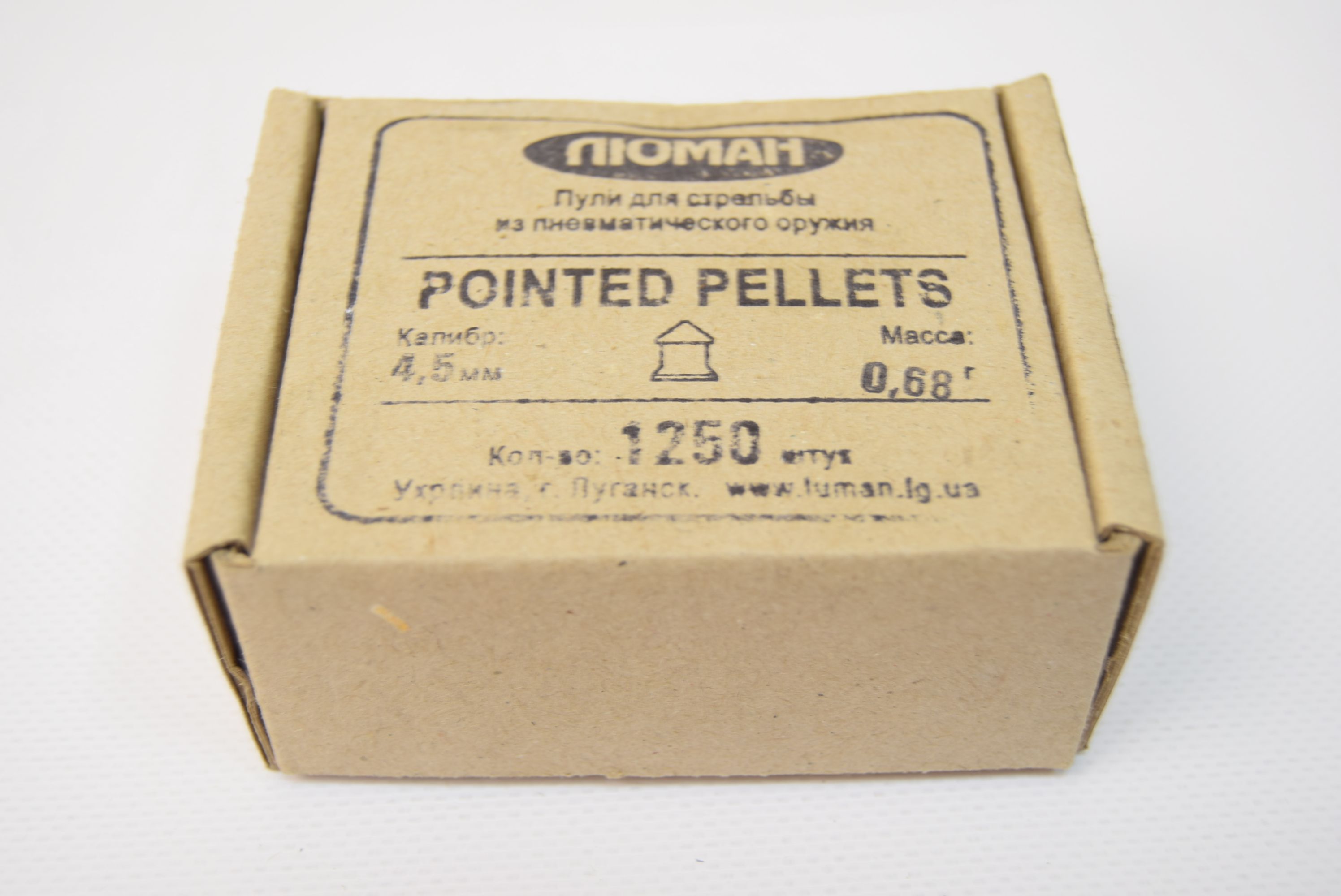 Пули Люман Pointed Pellets 0,68 г - тяжелые остроголовые свинцовые пули с гладкой поверхностью. Высокая кучность и пробиваемость. Предназначены для развлекательной стрельбы из пневматического оружия на дистанциях до 25 метров. Калибр - 4,5 мм. Упаковка - картонная коробка 1250 шт.