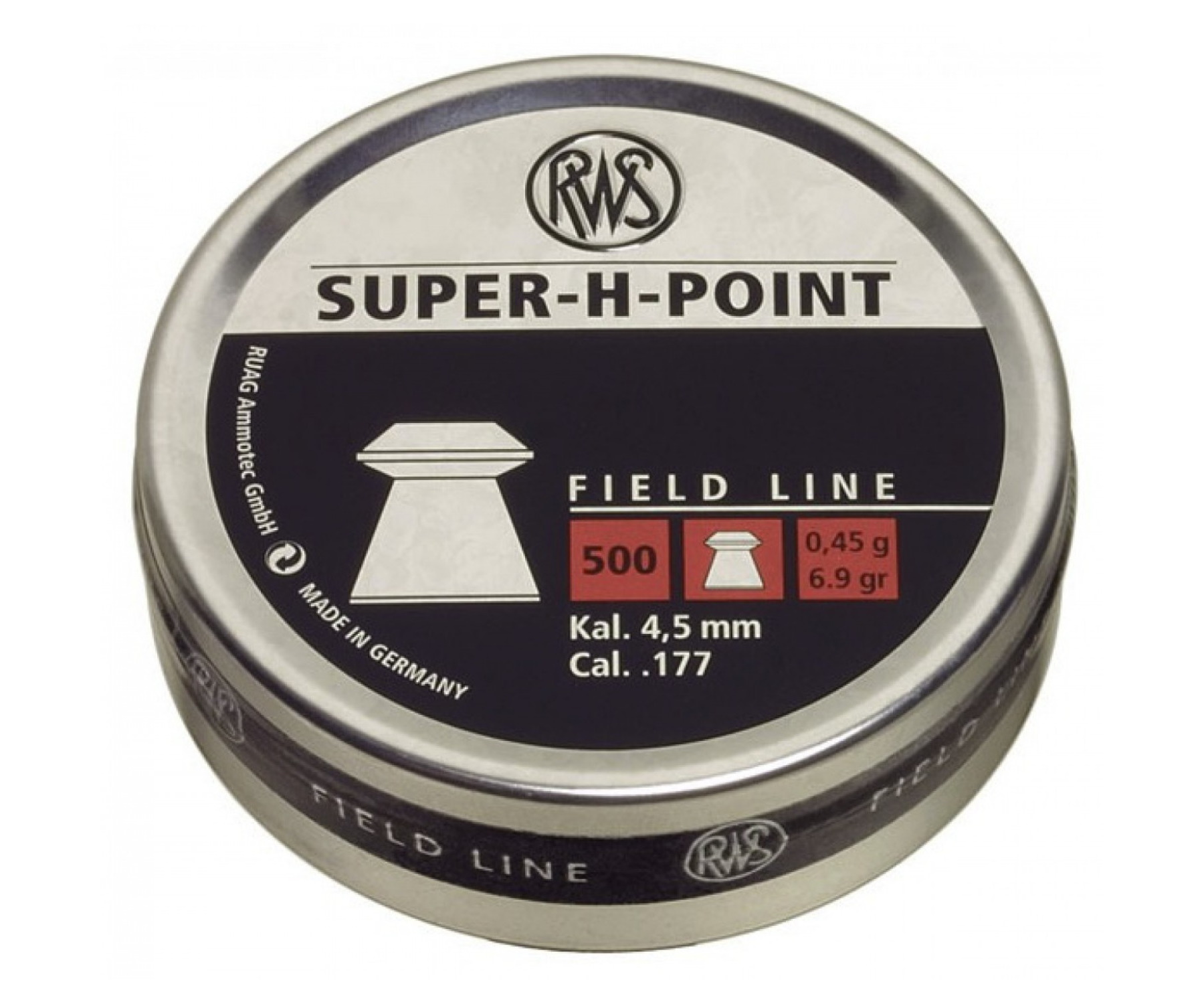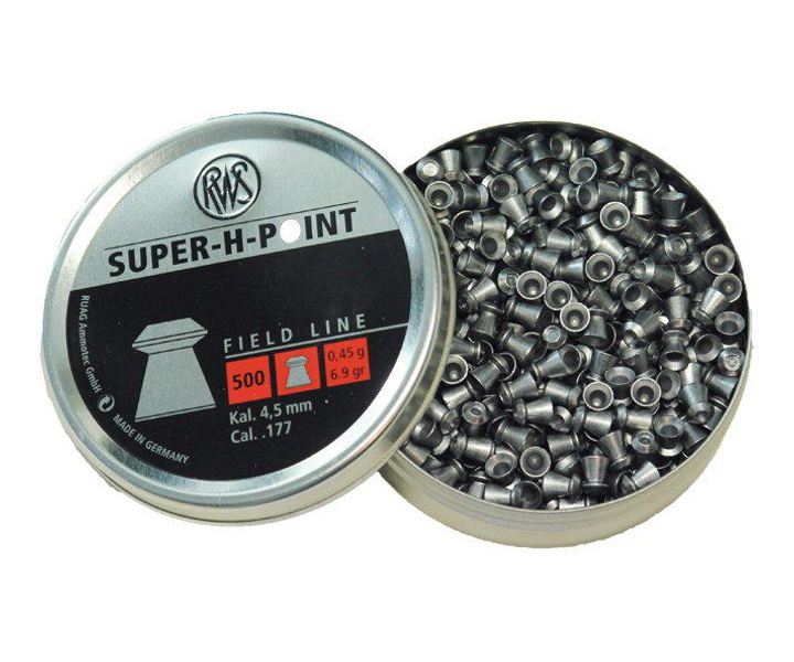 Пули RWS Super-H-Point калибра 4,5 мм - это качественные немецкие свинцовые пули, имеют гладкую поверхность и выемку в головной части. Отлично подходят для охоты на мелкую дичь и птиц. Пули весят 0,45 грамм, в упаковке 500 штук. Обладает очень большой пробивной силой вследствие высокой степени деформации головной части при попадании в цель. При поражении дичи достигается максимальный эффект шока.