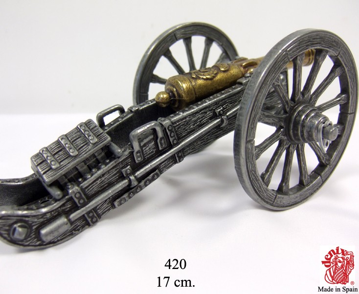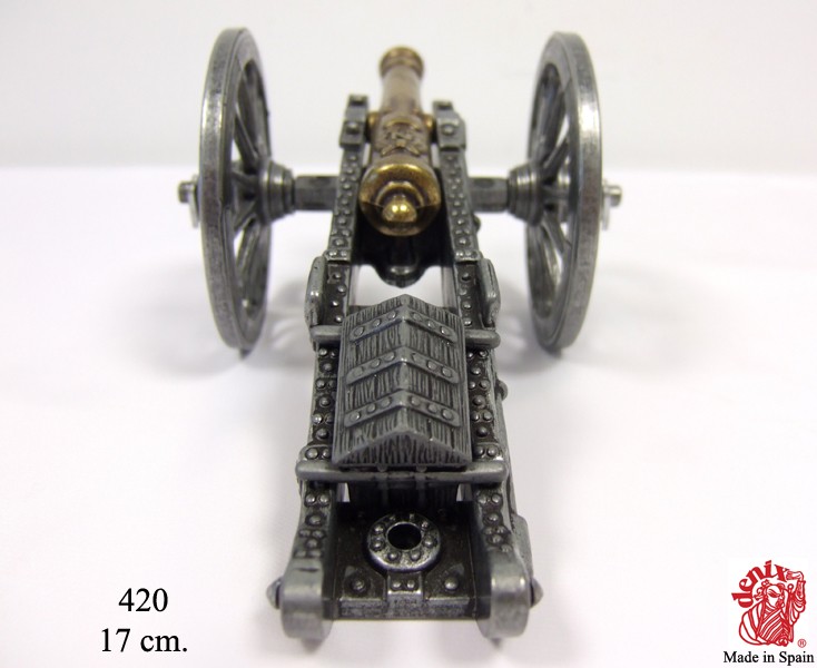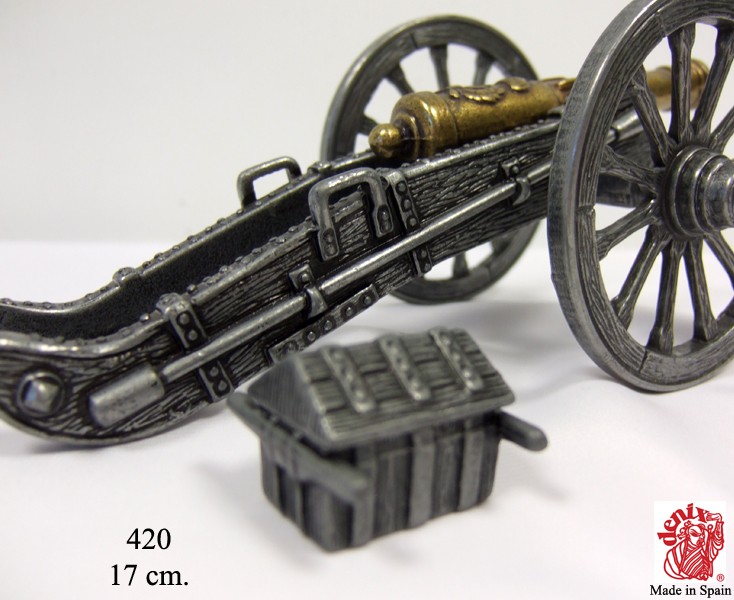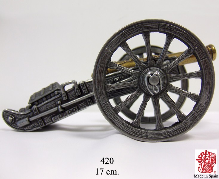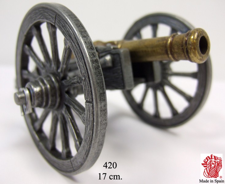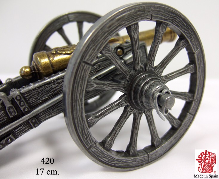 Макет DE-420 от испанского бренда Denix является масштабным образцом реального орудия, которое использовалось, в том числе, и в Бородинском сражении. Макет изготовлен из металлического сплава замак, как и у оригинальных образцов, ствол изготовлен из латуни, и имитирует бронзу, из которой и отливались стволы, в соответствии с системой Грибоваля. Макет орудия украшен вензелем императора Наполеона. Колеса пушки вращаются. Экземпляр выполнен с большим вниманием к каждой, даже второстепенной, детали. Такой экземпляр будет оригинальным пополнением коллекции оружия, подойдет и для эффектного украшения интерьера офиса или рабочего кабинета.