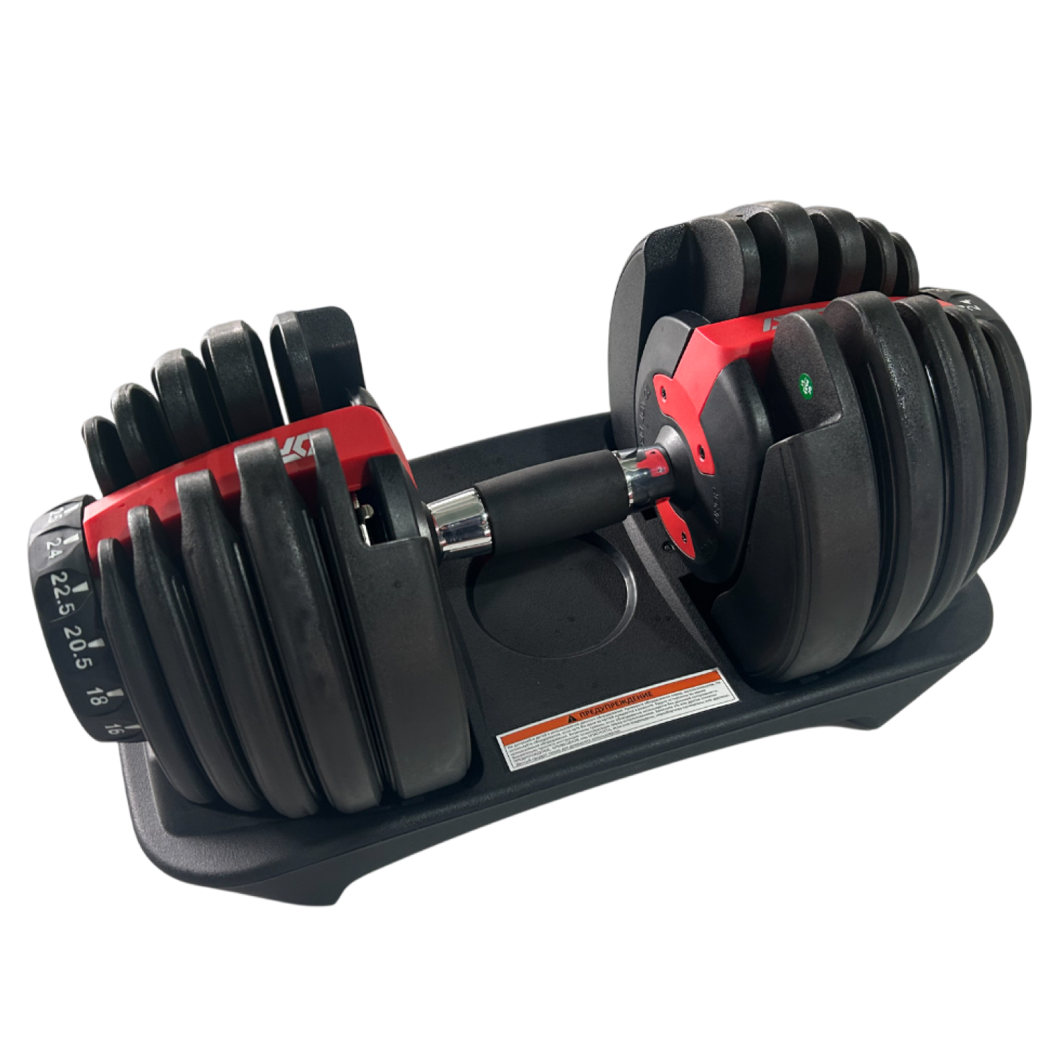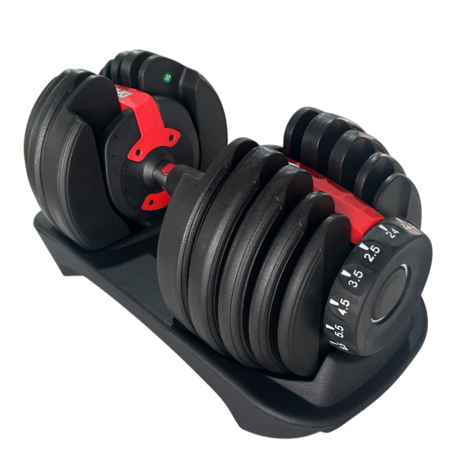 Регулируемая гантель позволяет менять вес от 2,5 до 24 кг с фиксированными значениями: 2,5 / 3,5 / 4,5 / 5,5 / 6,5 / 8 / 9 / 10 / 11,5 / 13,5 / 16 / 18 / 20,5 / 22,5 / 24 кг, что обеспечивает точную прогрессию нагрузки и эффективные тренировки.