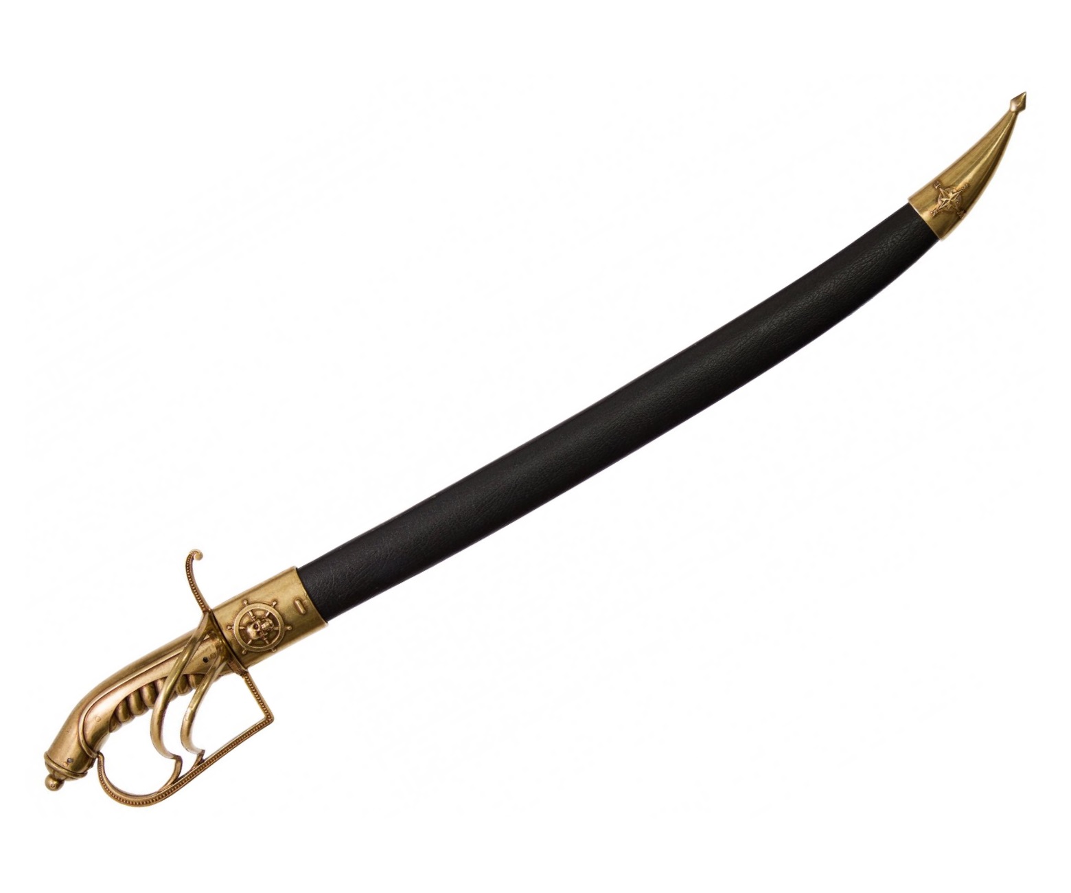 Сабля Варфоломея Робертса в золотистом исполнении – красивый экземпляр для коллекции, хороший подарок любителю красивый вещей, пригодится в качестве реквизита для любительских видеосъемок или тематических фотосессий.