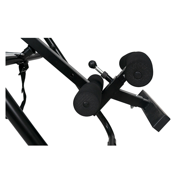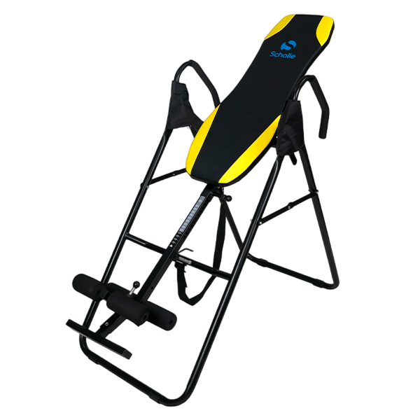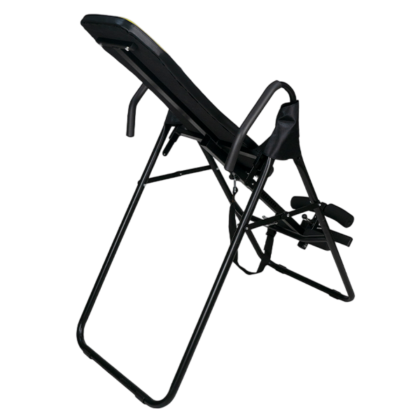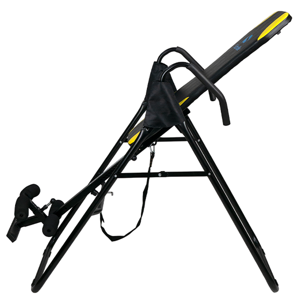 Базовая модель инверсионного стола.Для выбора нужного угла необходимо перед выполнением упражнений отклонить стол на требуемый угол, и выбрать лишнюю длину ремня с помощью пряжки. И далее приступать к занятиям. Стол возможно отклонить на любой угол. Длинный рычаг фиксации голеностопа обеспечивает комфорт и безопасность во время занятий.Максимальный выдерживаемый вес составляет 150 кг.