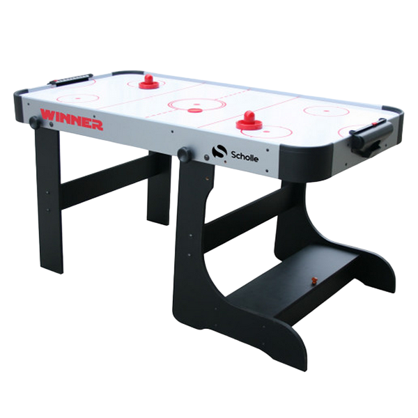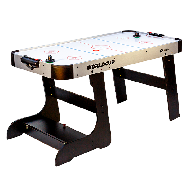 Данная модель предназначена для использования в офисе и дома. Уникальная складная конструкция позволяет быстро и удобно сложить стол после игры, обеспечивая компактное хранение в условиях ограниченного пространства. Корпус, ножки и игровое поле выполнены из МДФ. Размер стола - 5 FT. Пространство для размещения (ДхШ): 152 х 76.см Данная модель предназначена для начинающих и продвинутых игроков. Мощный вентилятор предотвращает трение шайбы об игровое поле, обеспечивая хорошую скорость и динамичность игры. Модель оснащена механическим счетчиком очков и воздушным компрессором мощностью 23 Вт. В комплекте: инструкция по сборке, биты (2 шт.) и шайбы (2 шт.).