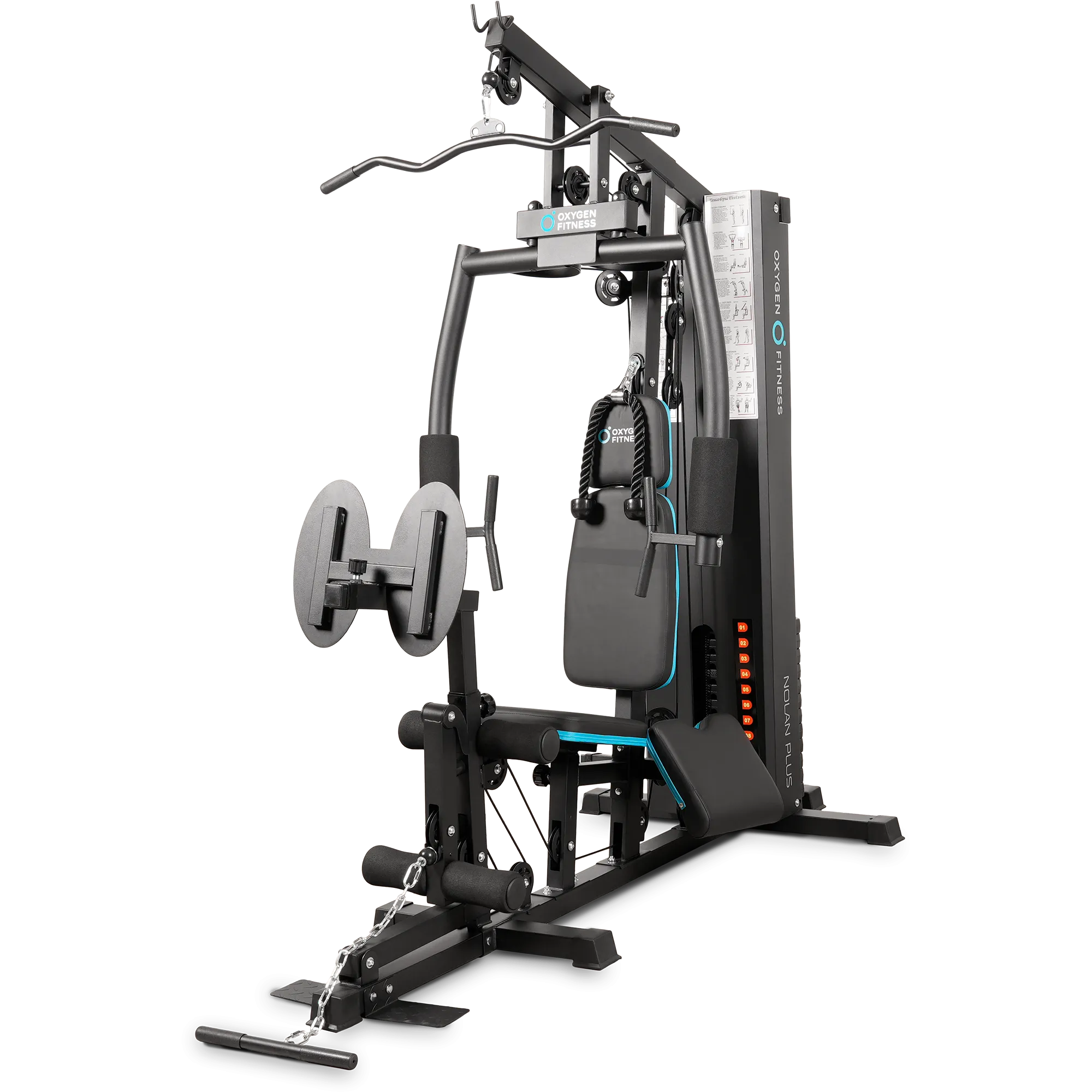 Силовой комплекс OXYGEN FITNESS NOLAN PLUS — это многофункциональная мультистанция, предназначенная для эффективной тренировки всех групп мышц. С максимальной весовой нагрузкой до 73 кг и прочной стальной конструкцией, этот тренажер обеспечивает надежность и долговечность в эксплуатации. Его эргономичное сиденье с наполнителем из PU поролона и обивкой из искусственной кожи гарантирует комфорт даже во время длительных тренировок. Комплекс позволяет выполнять разнообразные упражнения для всех групп мышц благодаря наличию 12 плит стека весом 5.7 кг каждая, что дает возможность легко настраивать уровень нагрузки. С системой тросов диаметром 6 мм и прочной стальной конструкции, вы можете быть уверены в безопасности и эффективности тренировок. Регулируемое сиденье с 4 уровнями высоты позволяет адаптировать тренажер под рост пользователя, что делает его подходящим для людей разного телосложения. В комплекте с OXYGEN FITNESS NOLAN PLUS вы найдете множество удобных аксессуаров: канат для трицепса, рукоятку для тяги сверху, манжету для ноги, прямую рукоятку и платформу для жима ногами. Также в комплектацию входят неопреновые валики: 4 для ног и 2 для рук, что обеспечивает дополнительный комфорт и безопасность во время тренировок. Размеры подушек (парта бицепса, спинка и сиденье) разработаны с учетом анатомических особенностей, что способствует правильной поддержке тела. Силовой комплекс OXYGEN FITNESS NOLAN PLUS станет отличным выбором для домашних тренировок или для использования в корпоративных фитнес-клубах, обеспечивая эффективность и комфорт во время занятий. Ключевые преимущества OXYGEN FITNESS NOLAN PLUS: • многофункциональность: возможность тренировки всех групп мышц с помощью одного тренажера; • комфорт: эргономичное сиденье и продуманные размеры подушек для максимального удобства; • надежность: прочная стальная конструкция и качественные материалы обеспечивают долгий срок службы.