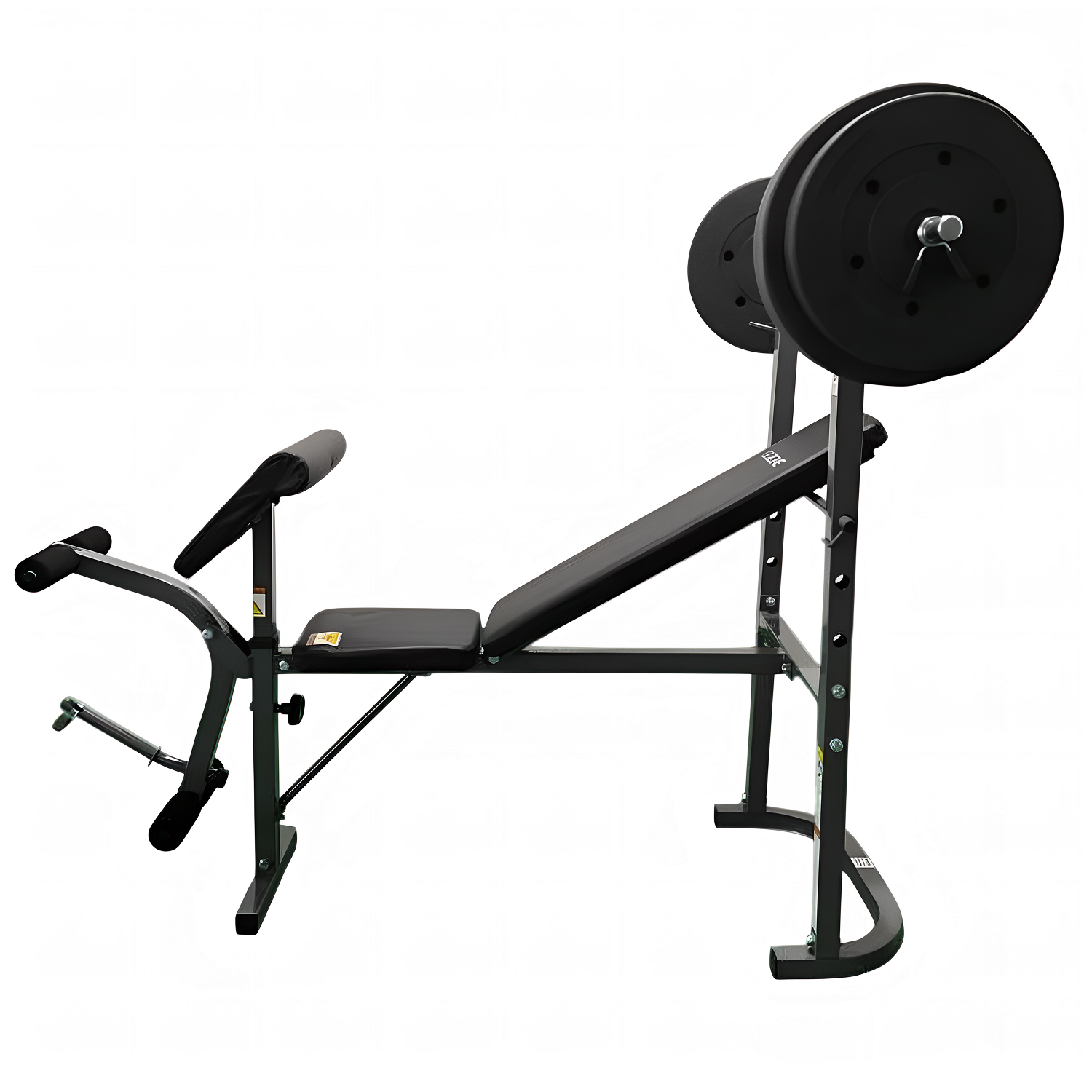 Максимальная статичная нагрузка составляет 190 кг. В комплект входят два диска по 5 кг и два диска по 10 кг, что позволяет сразу приступить к тренировкам и постепенно увеличивать нагрузку. Посадочный диаметр дисков — 19 и 25 мм, подходит для стандартных весовых дисков.