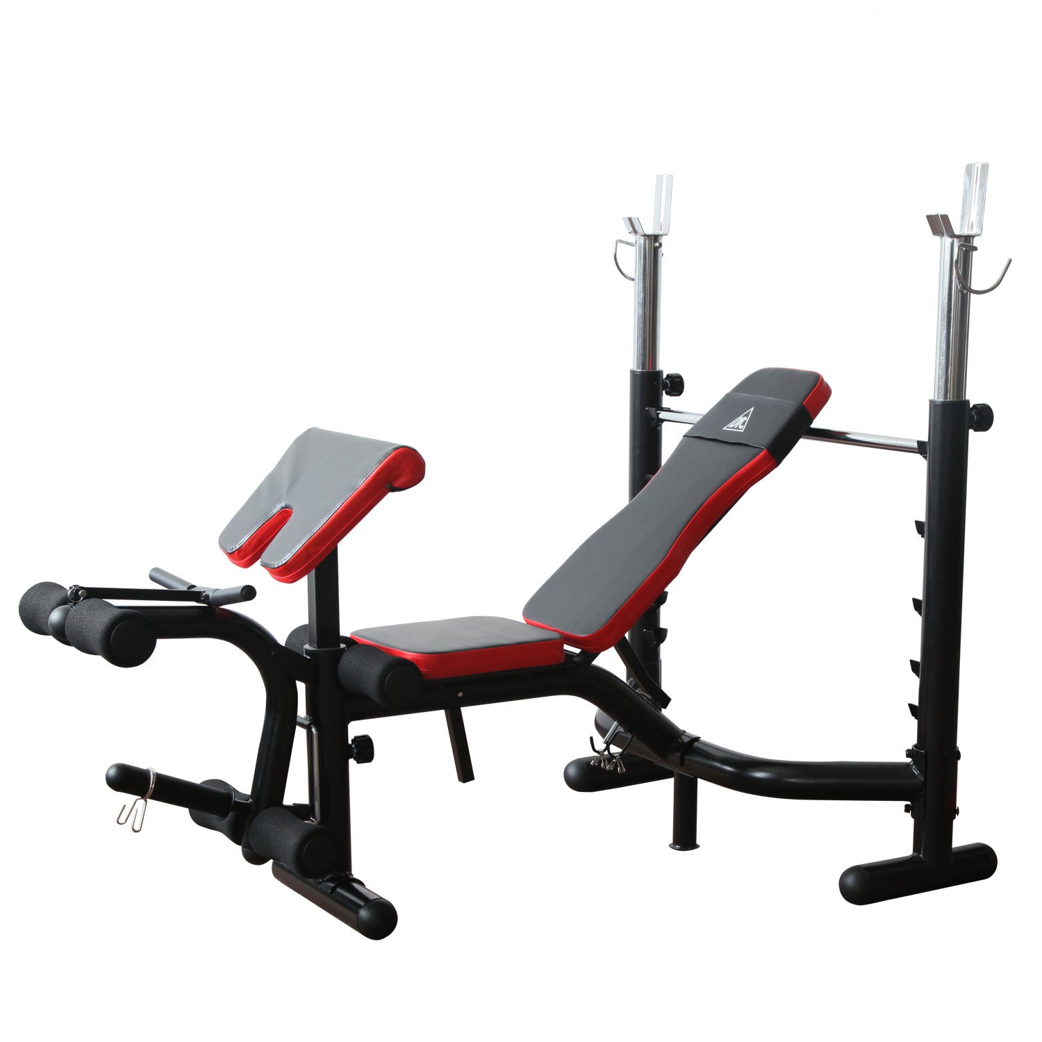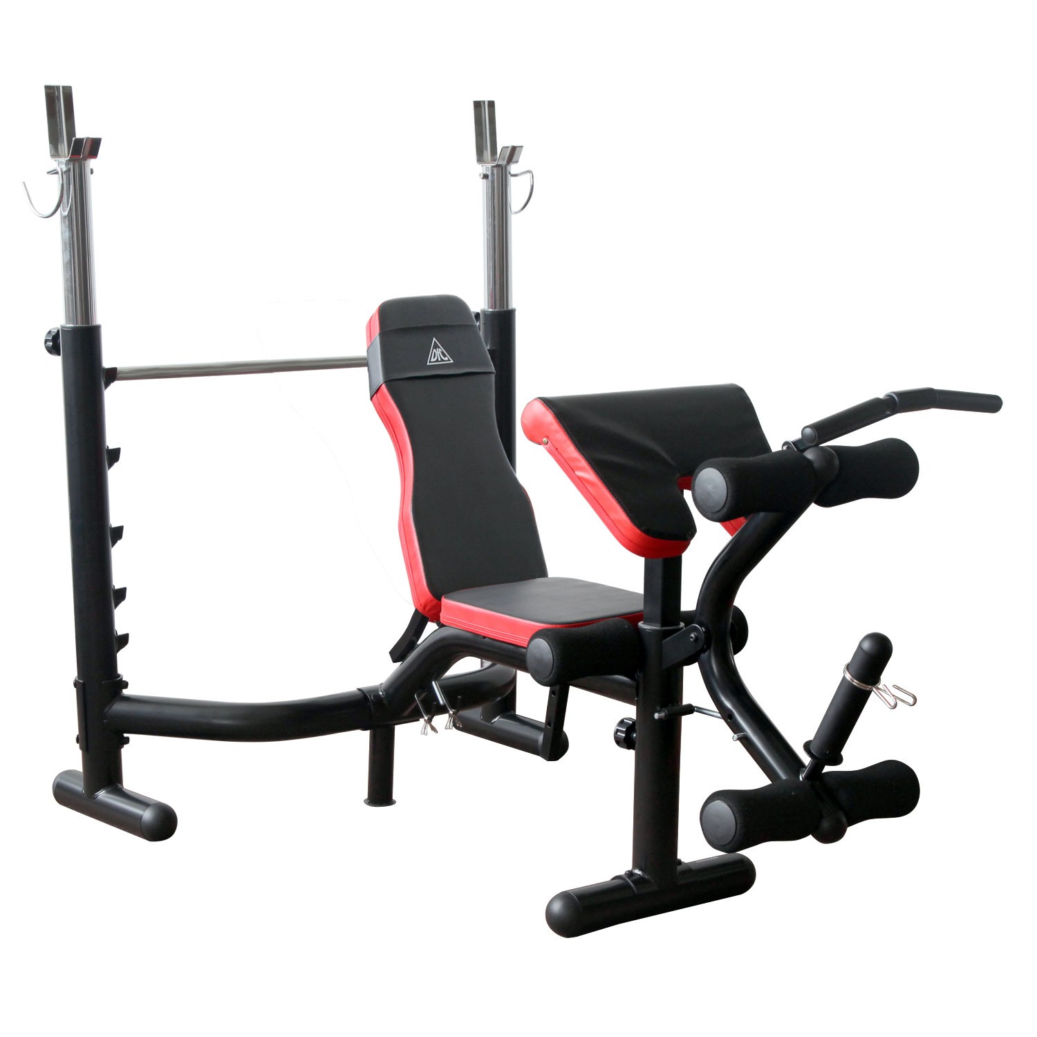 Прочная устойчивая конструкция с ударопрочным эмалевым покрытием. Стойки под штангу с замками безопасности, имеют регулировку по высоте. Рычаги блока для ног снабжены мягкими валиками. Упражнения: жим лежа, сгибание и разгибание ног в коленном суставе, парта для бицепсов. В качестве нагрузки используются диски диаметром 26 и 50 (через втулку) мм . Штанга и диски в комплект не входят . Максимальный вес пользователя 120 кг Нагрузка на стойки 100 кг Общая нагрузка на скамью 220 кг Расстояние между стойками (под гриф) 105,5 см Размер профиля Ø60 мм Размеры в рабочем виде 169 х 112 х 137 см Размеры упаковки 109,5 х 59 х 29 см Вес 36,8 / 40,3 кг Бренд DFC Страна производства Китай Гарантия 12 месяцев Инструкция скачать