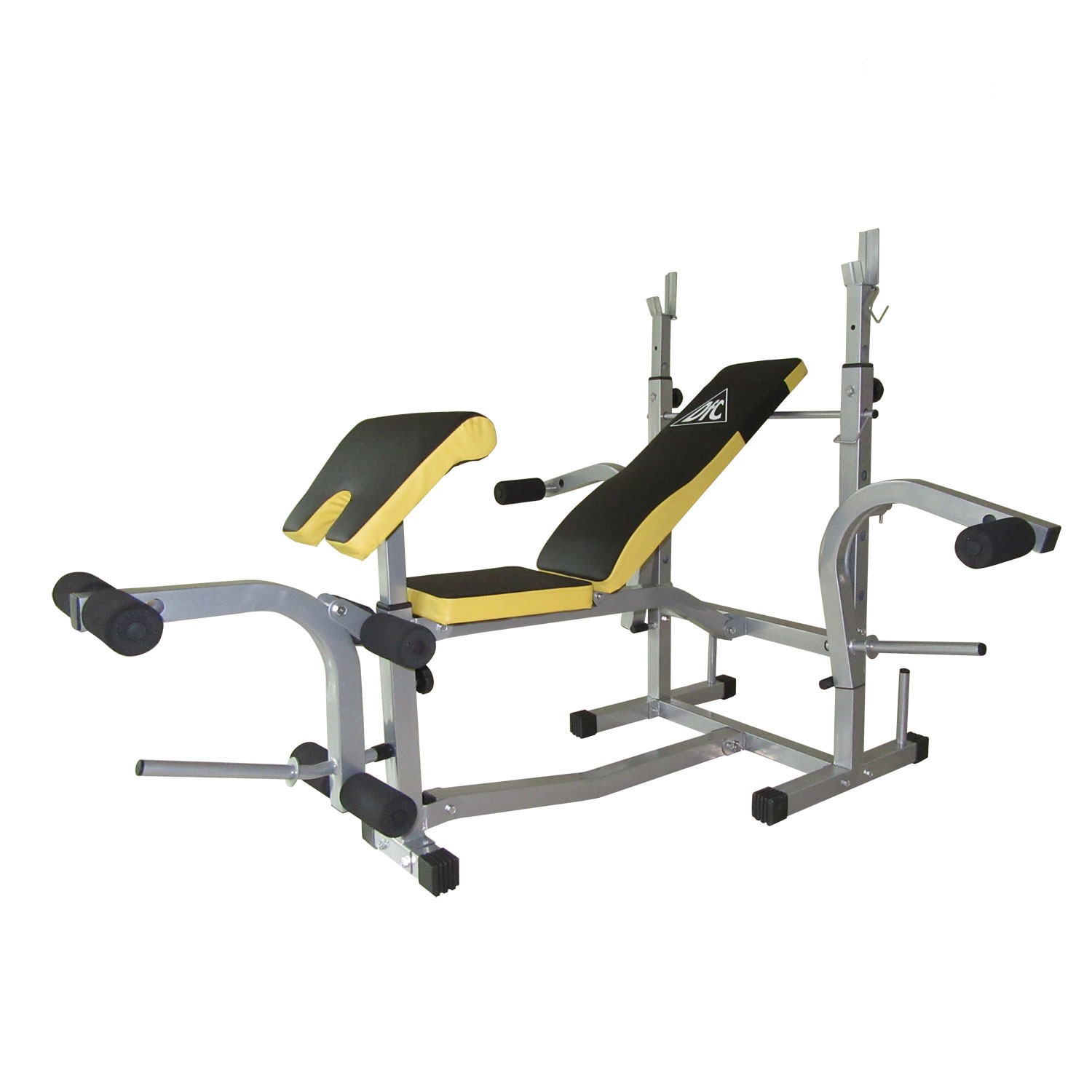 Прочная устойчивая конструкция с ударопрочным эмалевым покрытием. Рычаги блока для ног снабжены мягкими валиками. Есть 2 места для хранения дисков. Позволяет выполнять упражнения: жим лежа, сгибание и разгибание ног в коленном суставе, баттерфляй. В качестве нагрузки используются диски диаметром 26 мм . Штанга и диски в комплект не входят . Вес пользователя до 100 кг Нагрузка свободные веса Диаметр дисков (веса) 25 мм Нагрузка на стойки до 100 кг Общая нагрузка на скамью до 200 кг Расстояние между стойками (под гриф) 70 см Размер профиля 50 х 50 мм / 38 х 38 мм Толщина профиля 1,5 мм Размеры в рабочем состоянии 180 х 159 х 126 см Размер упаковки 100 х 73 х 22 см Вес 37 / 39 кг Бренд DFC Страна производства Китай Гарантия 12 месяцев Инструкция скачать