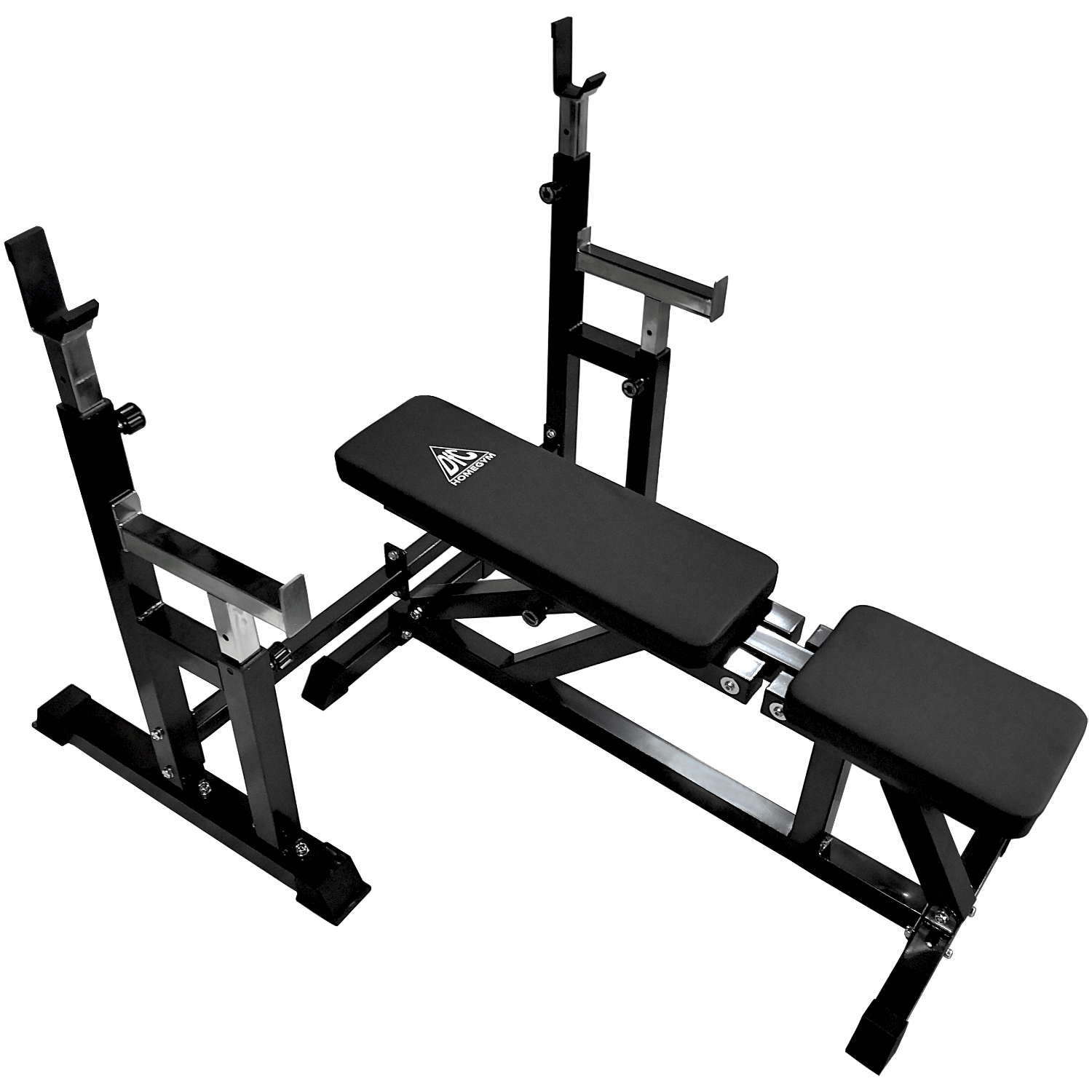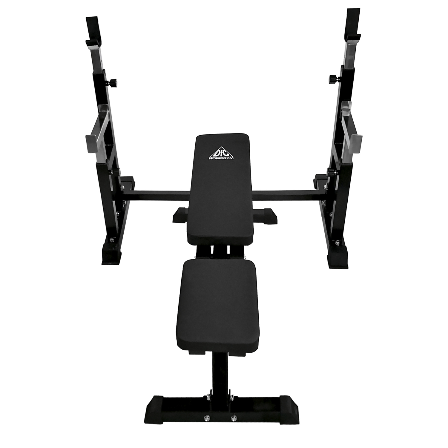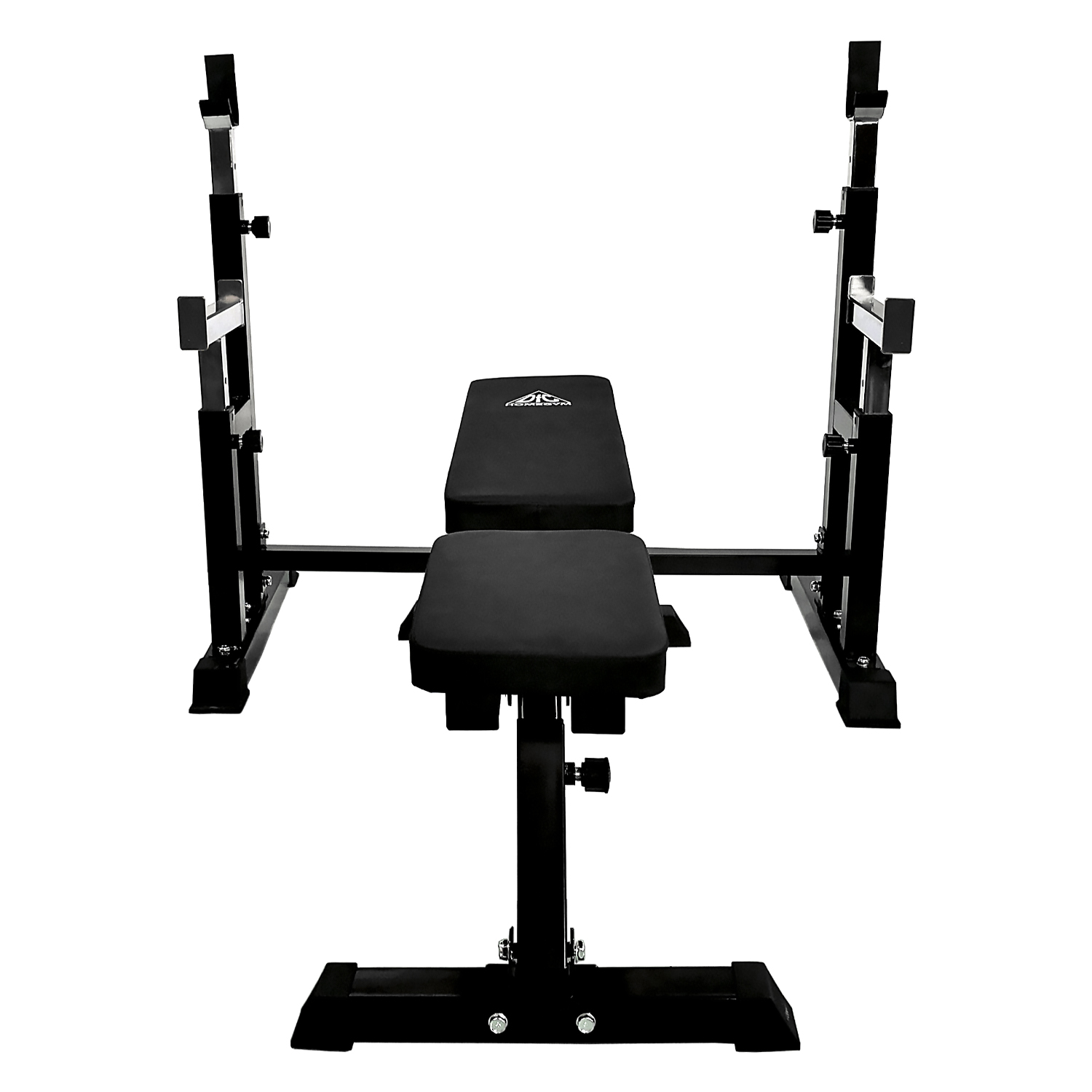В комплекте поставляется силовая скамья и силовая стойка для штанги. Сиденье и спинка скамьи регулируется по углу наклона в широком диапазоне. Фиксация в нужном положении с помощью удобной подпружиненной ручки.