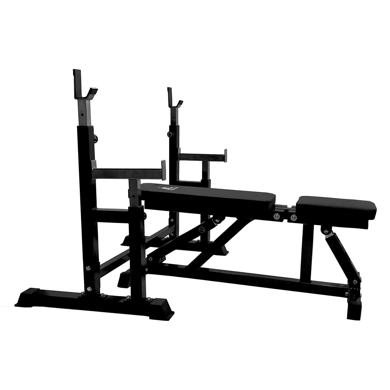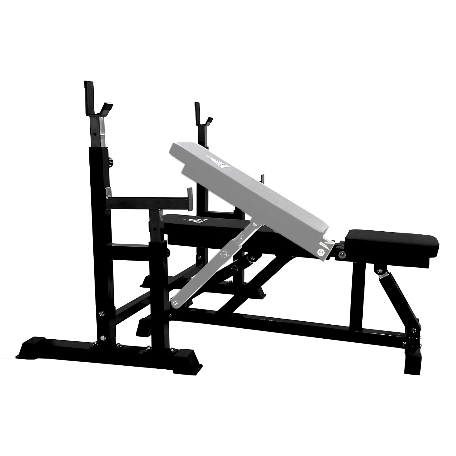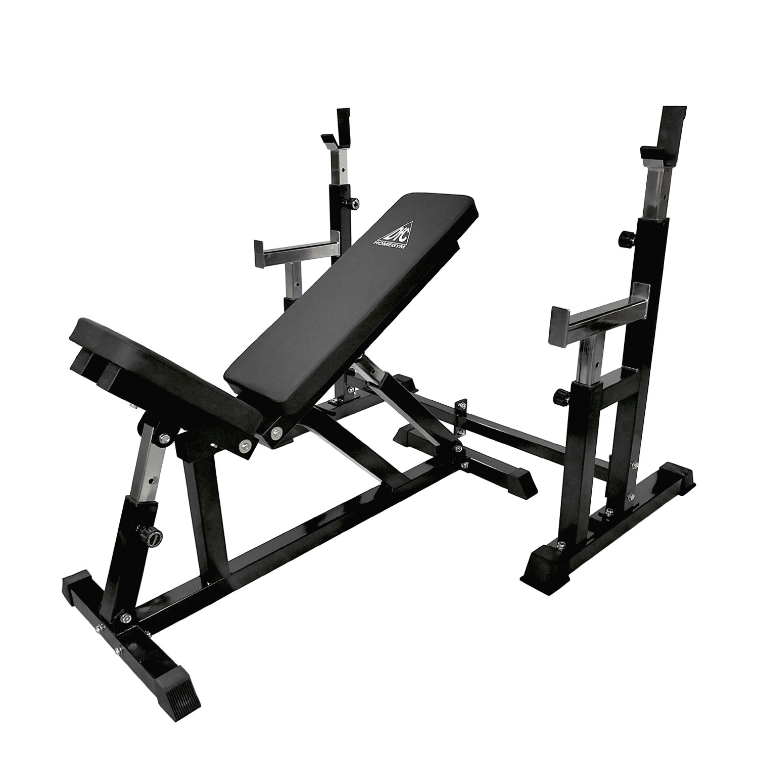 В комплекте поставляется силовая скамья и силовая стойка для штанги. Сиденье и спинка скамьи регулируется по углу наклона в широком диапазоне. Фиксация в нужном положении с помощью удобной подпружиненной ручки.