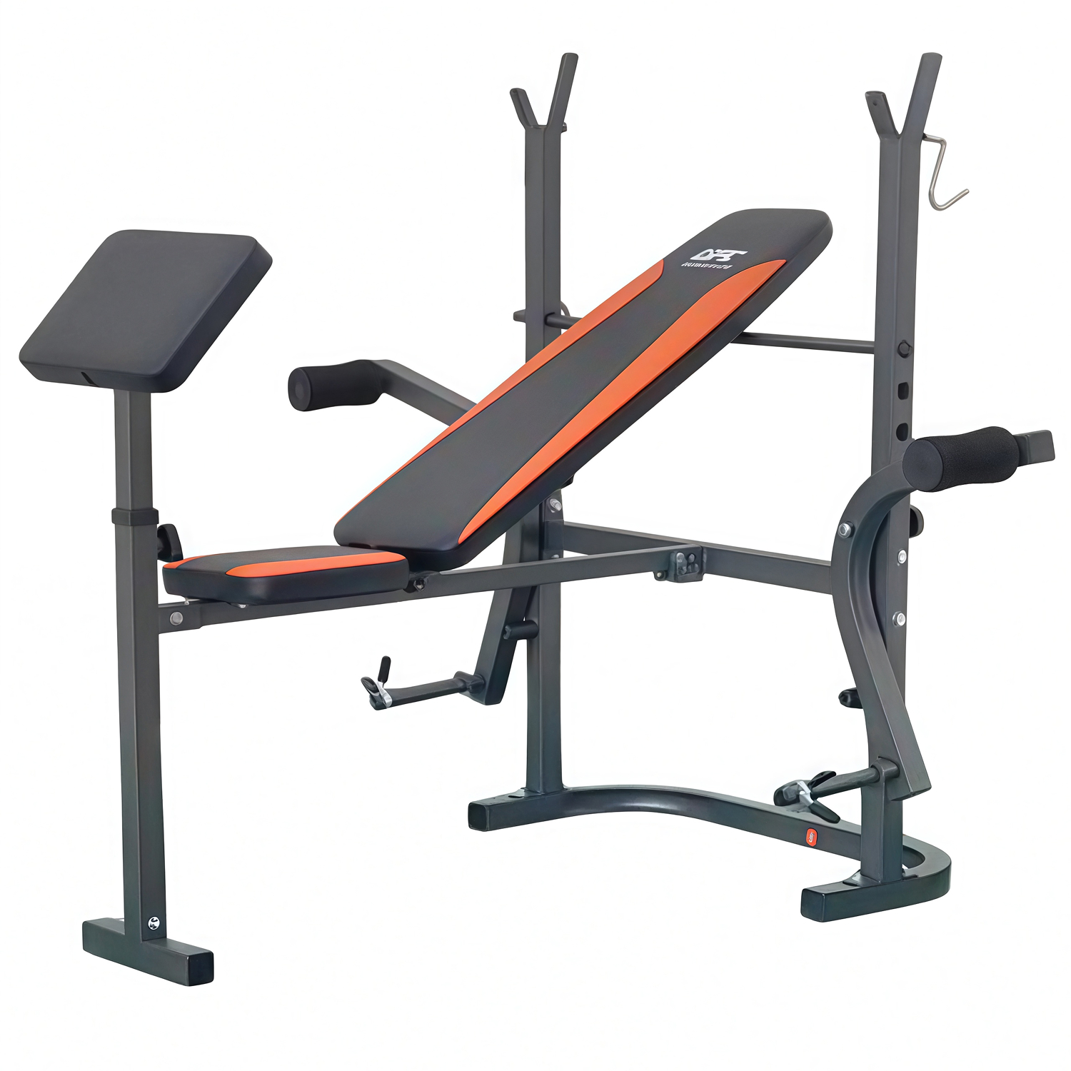 Скамья со стойками под штангу с опциями DFC D125 предназначена для домашнего использования и подходит для базовых силовых тренировок. Конструкция скамьи позволяет эффективно прорабатывать грудные мышцы, плечи, руки, мышцы ног, ягодицы, пресс, а также задействовать мышцы спины в качестве стабилизаторов.