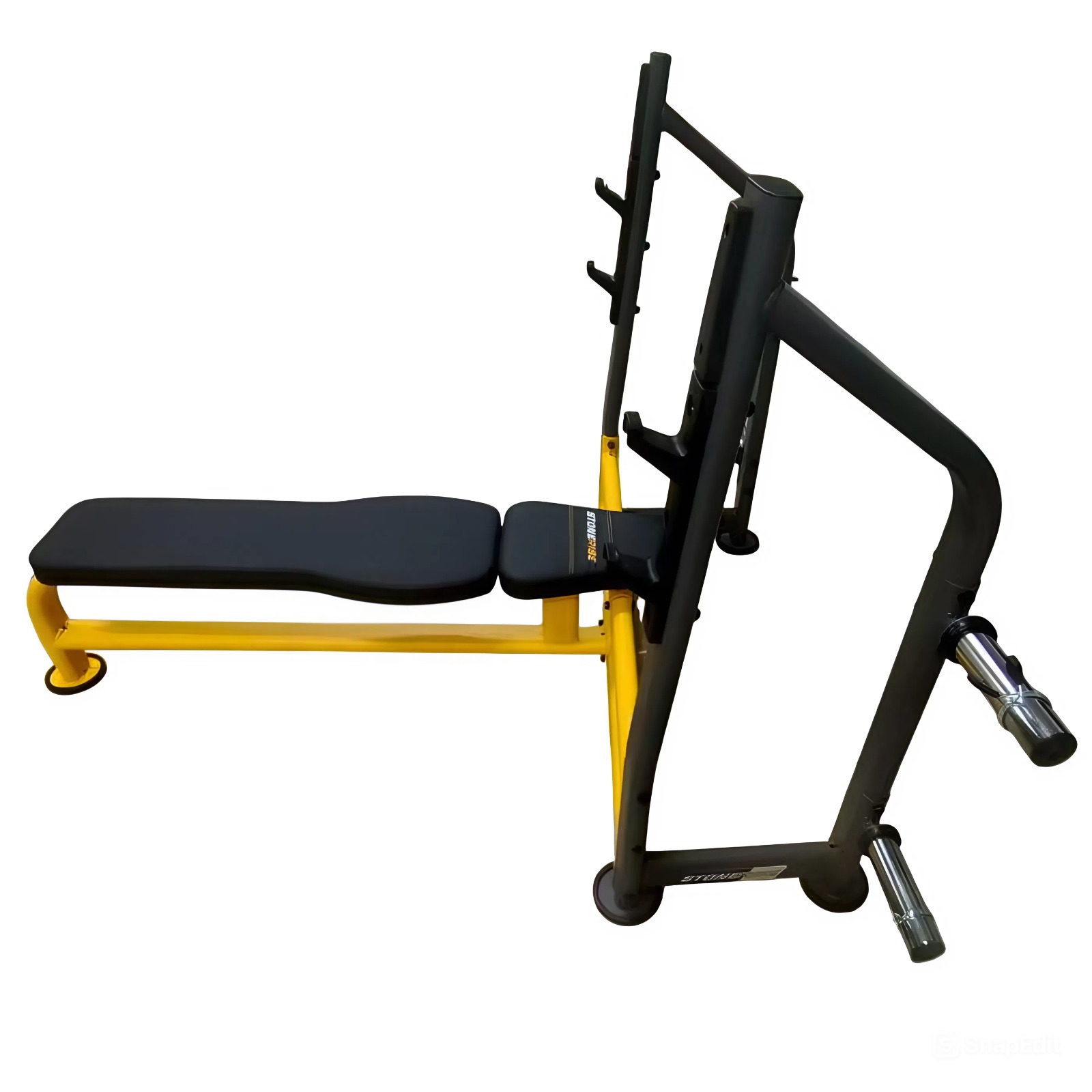 Скамья со стойками под штангу STONERISE D5001— надёжный домашний тренажёр для полноценной силовой тренировки грудных мышц, рук и плеч. Конструкция включает устойчивые стойки под штангу, прочные трубки, крепёжные элементы и мягкие подушки для спинки и сиденья, обеспечивая комфорт и безопасность во время выполнения упражнений.