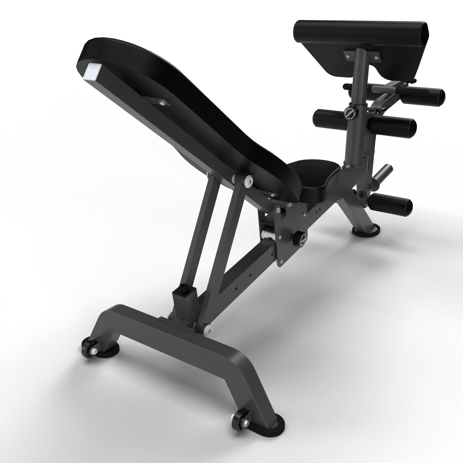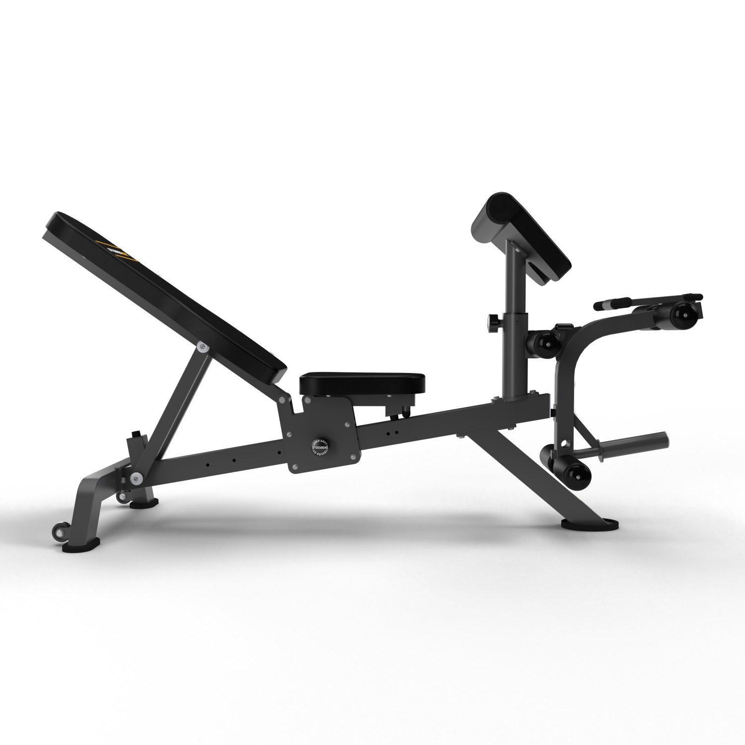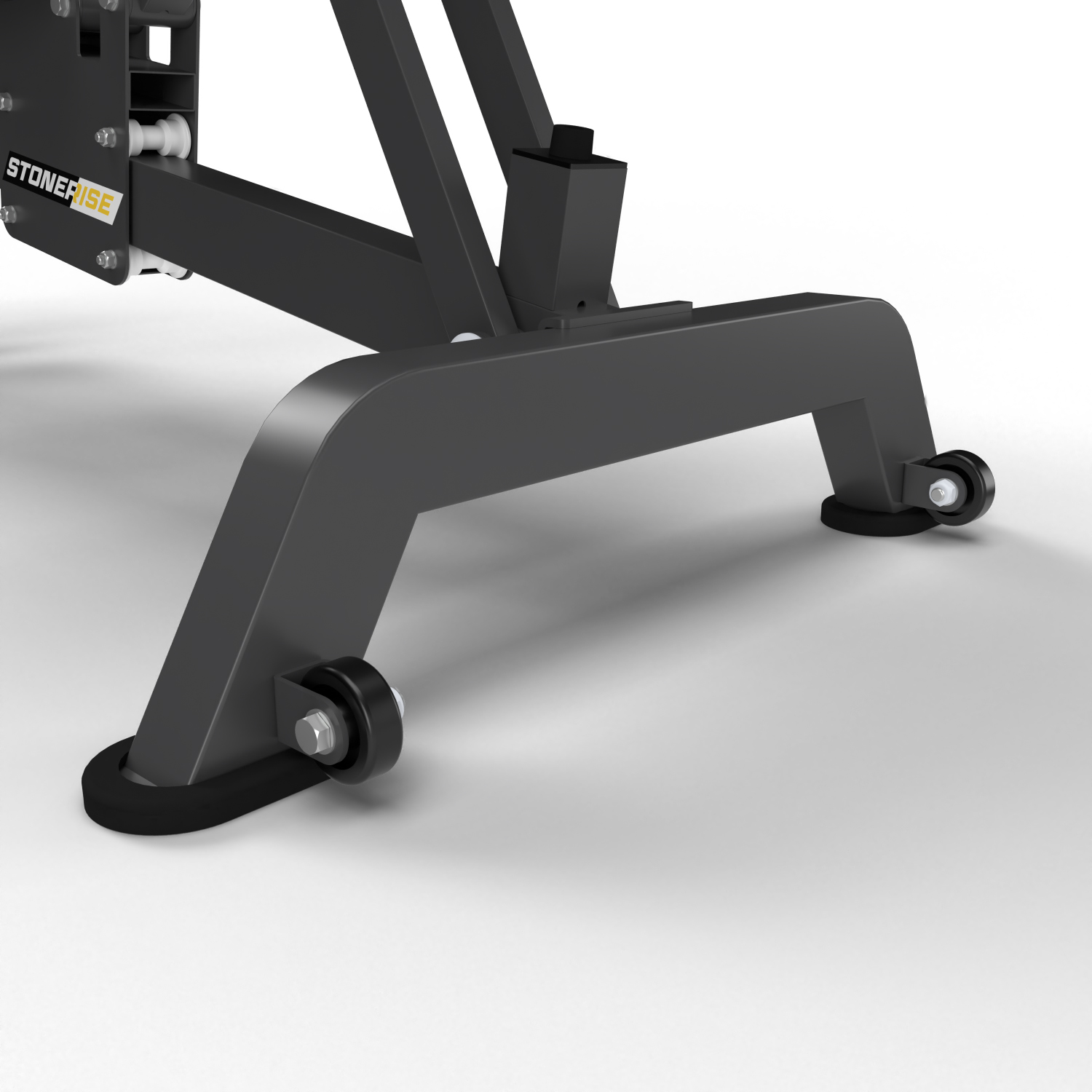 Скамья универсальная STONERISE ThunderShape. Благодаря множеству функций, она является многофункциональным тренажёром на все группы мышц: от ног, в прокачке которых помогут регулируемые валики, до рук, развить которые поможет парта.