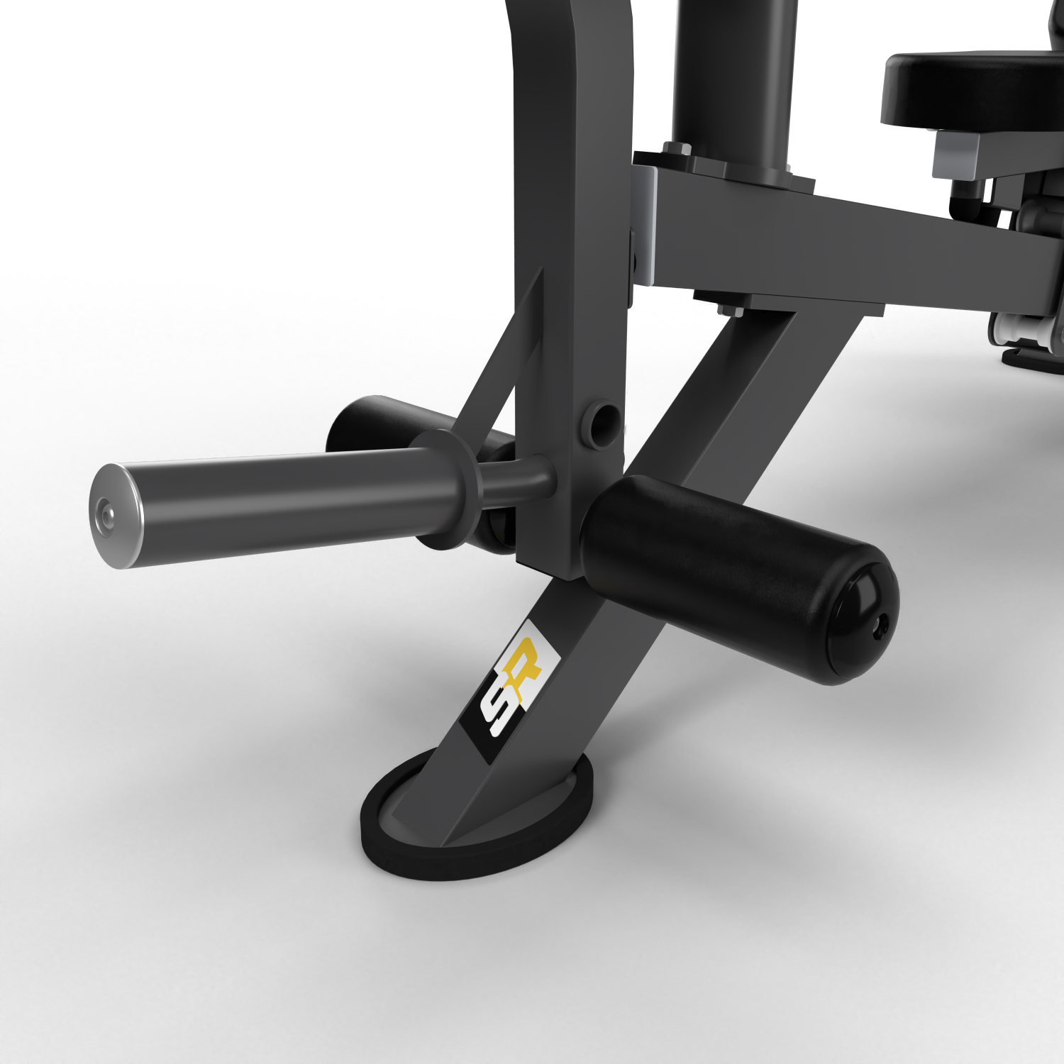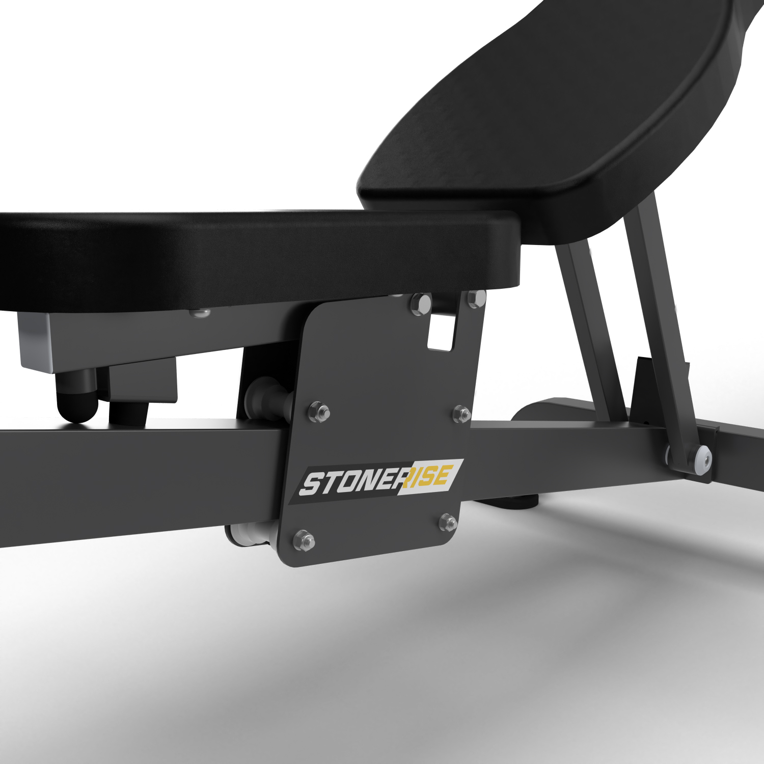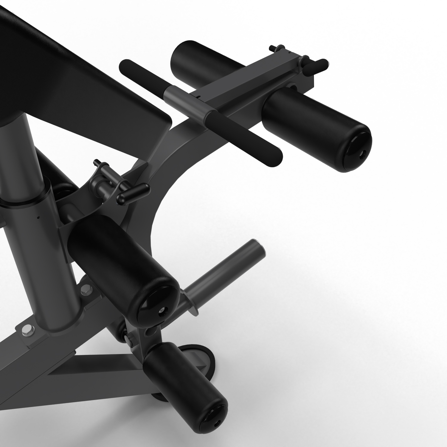 Скамья универсальная STONERISE ThunderShape. Благодаря множеству функций, она является многофункциональным тренажёром на все группы мышц: от ног, в прокачке которых помогут регулируемые валики, до рук, развить которые поможет парта.