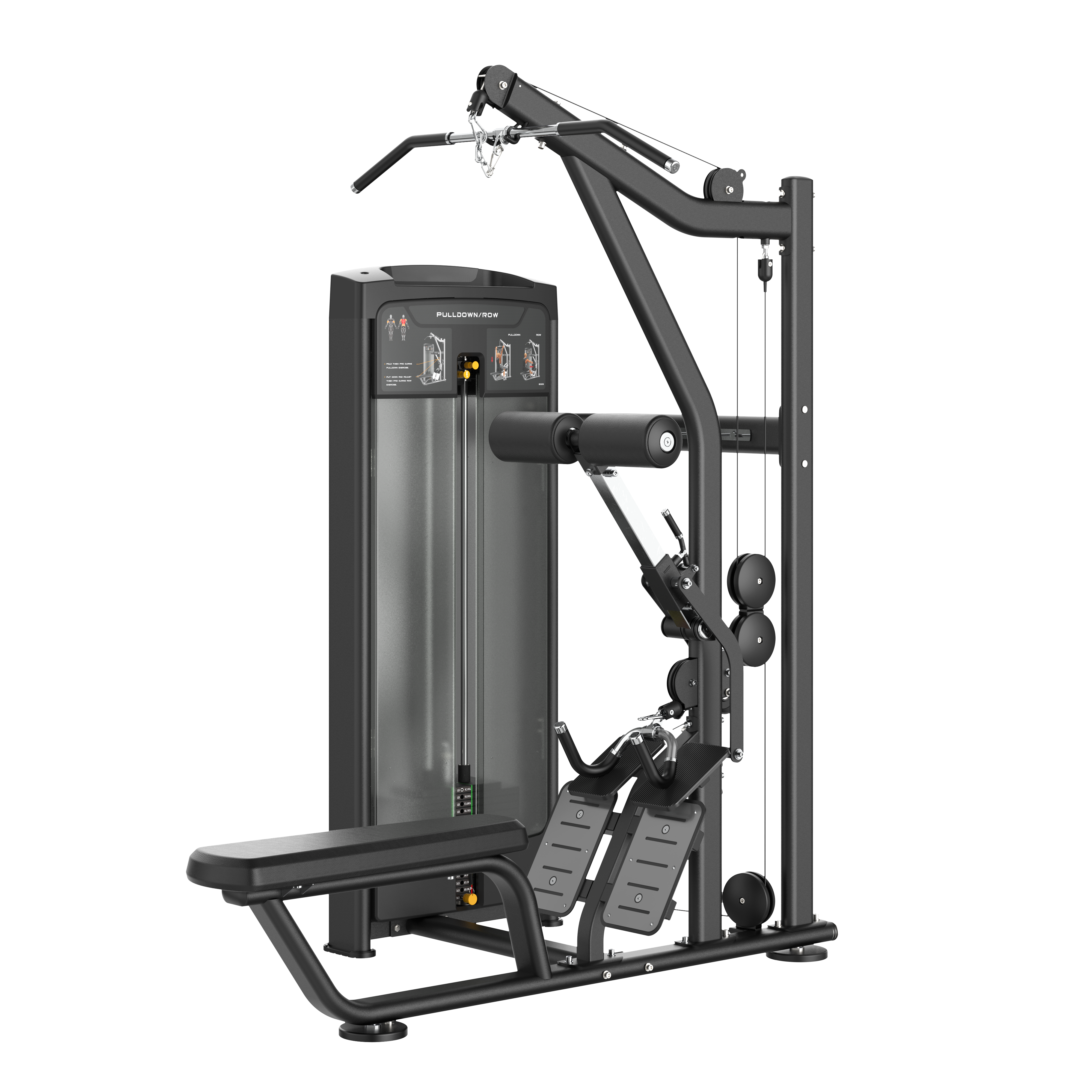 Тяга сверху/гребная тяга Smith RE8026 – один из самых успешных тренажеров на рынке в современном дизайне. Максимальный комфорт! Новая конструкционная особенность заключается в системе поднимания опорных валиков при выполнении упражнения горизонтальной тяги; Длинная опорная подушка позволяет занять наилучшее стартовое положение при выполнении гребной тяги; Широкие и комфортные опорные платформы для ног покрыты полированными металлическими пластинами с антискользящими зацепами.