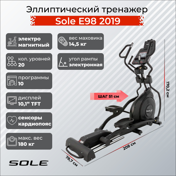 Профессиональная модель серии эллиптических тренажеров Sole.Имеет усиленную конструкцию, выдерживающую интенсивную эксплуатацию. Модель обладает непревзойденными техническими характеристиками, удобной эргономикой и обеспечивает полную физиологию движения.К преимуществам можно отнести превосходную плавность хода, удобную систему регулировки и широкий программный функционал. Эллиптические тренажеры Sole - это не просто тренажеры, это продуманная концепция, обеспечивающая комфорт и безопасность, также как и высокую эффективность тренировки.Запатентованная технология отрицательного внутреннего угла -2? снижает нагрузку на коленные суставы, а возможность регулировки угла наклона движения позволяет прорабатывать все группы мышц.