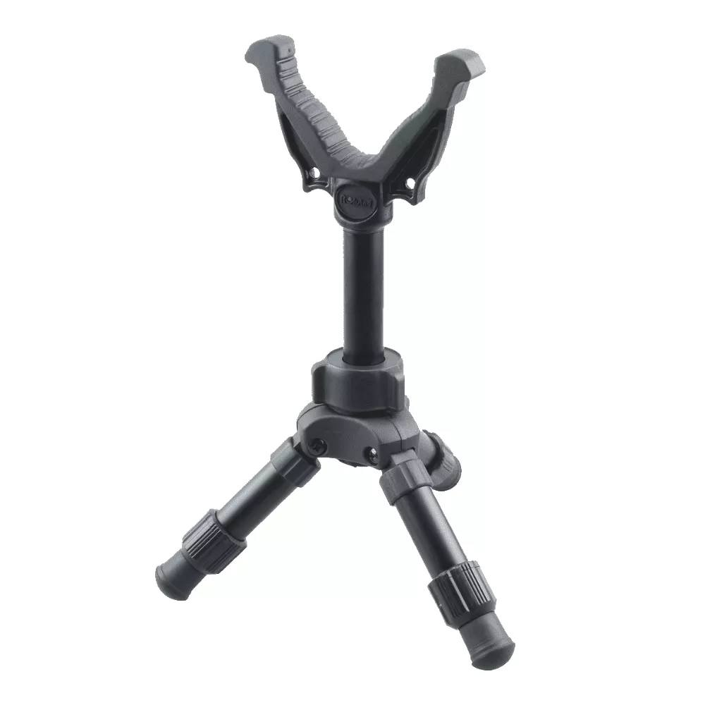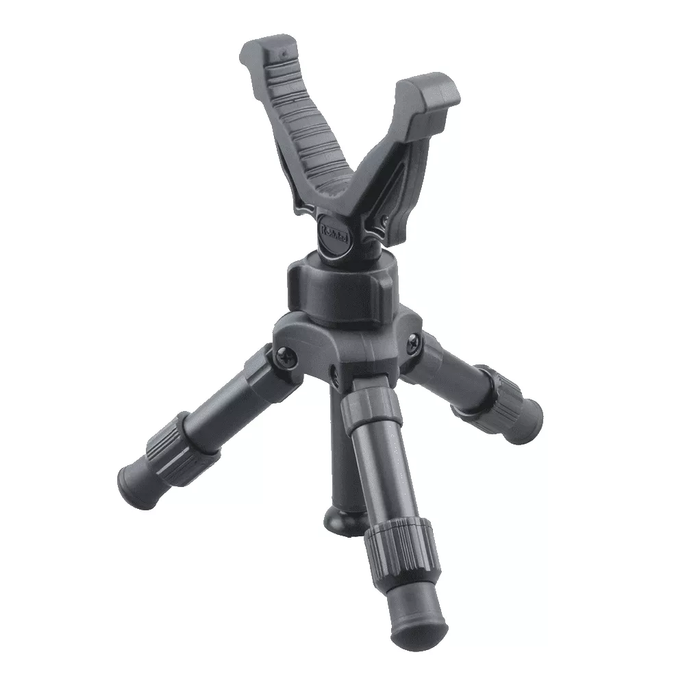 Тренога (трипод) от компании Vector Optics может использоваться как подставка для стрельбы из любых видов оружия. Для размещения оружия имеется V-образный кронштейн. Подшипник обеспечивает свободное вращение кронштейна на 360 градусов. Опора снабжена телескопическими ножками, выполненными из алюминиевого сплава 6061-T6, опорные наконечники изготовлены из резины.