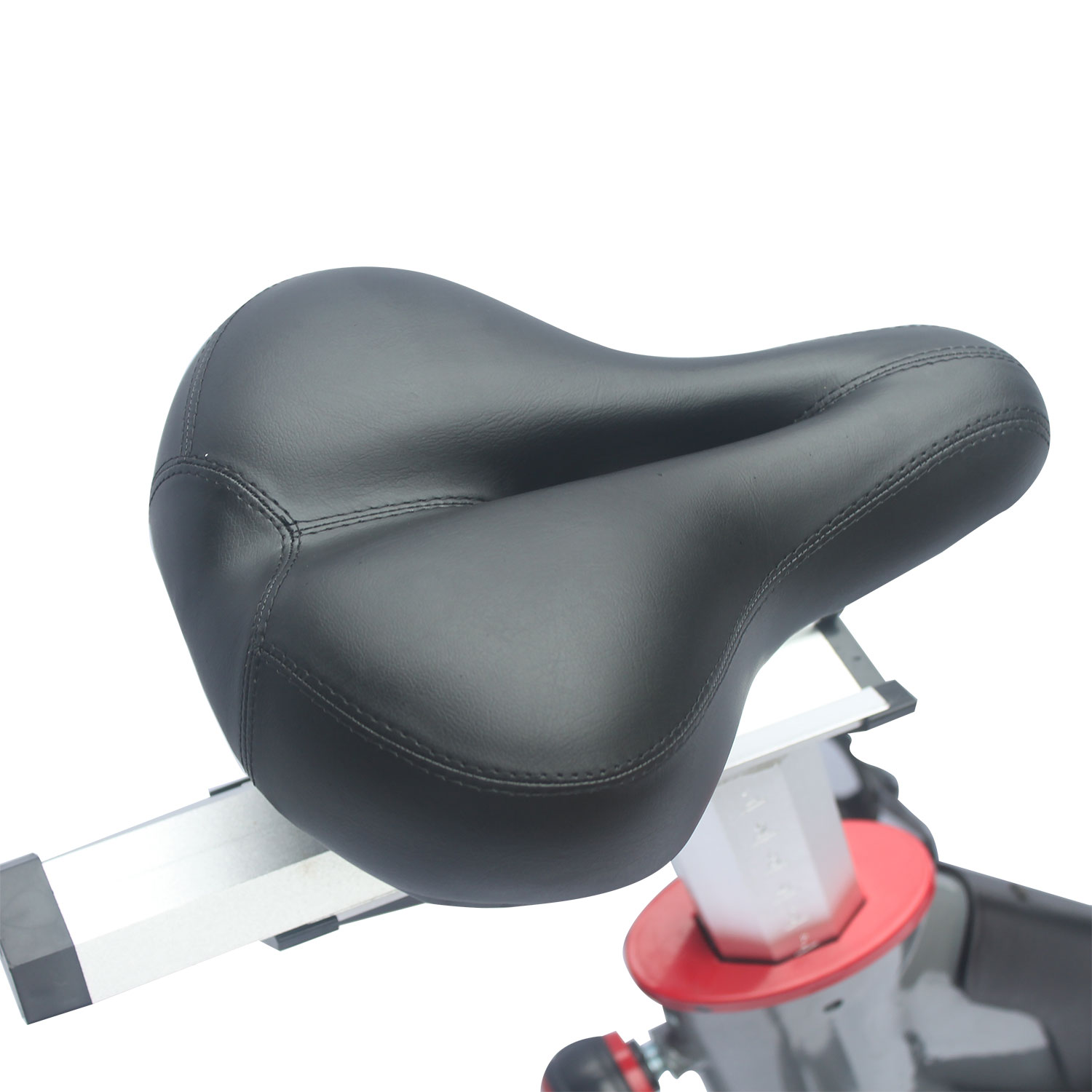 Сиденье имеет эргономичную форму и регулируется по высоте и в горизонтальной плоскости для удобной посадки во время тренировки. Для регулировки не требуется специальный инструмент, модель оснащена удобными фиксаторами положения. Подседельный штырь изготовлен из стального профиля, и имеет матовое покрытие, что позволяет избежать царапин на поверхности при регулировке сиденья.