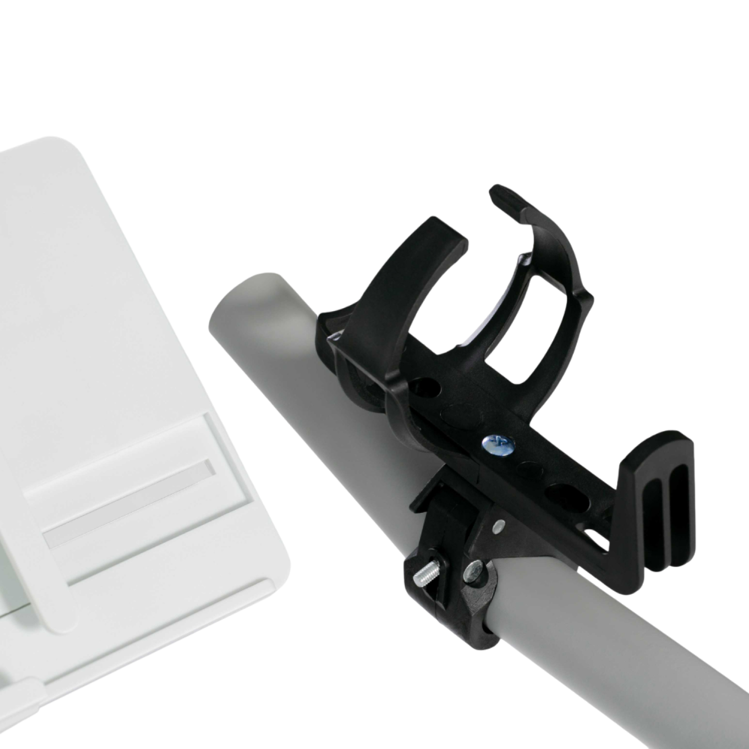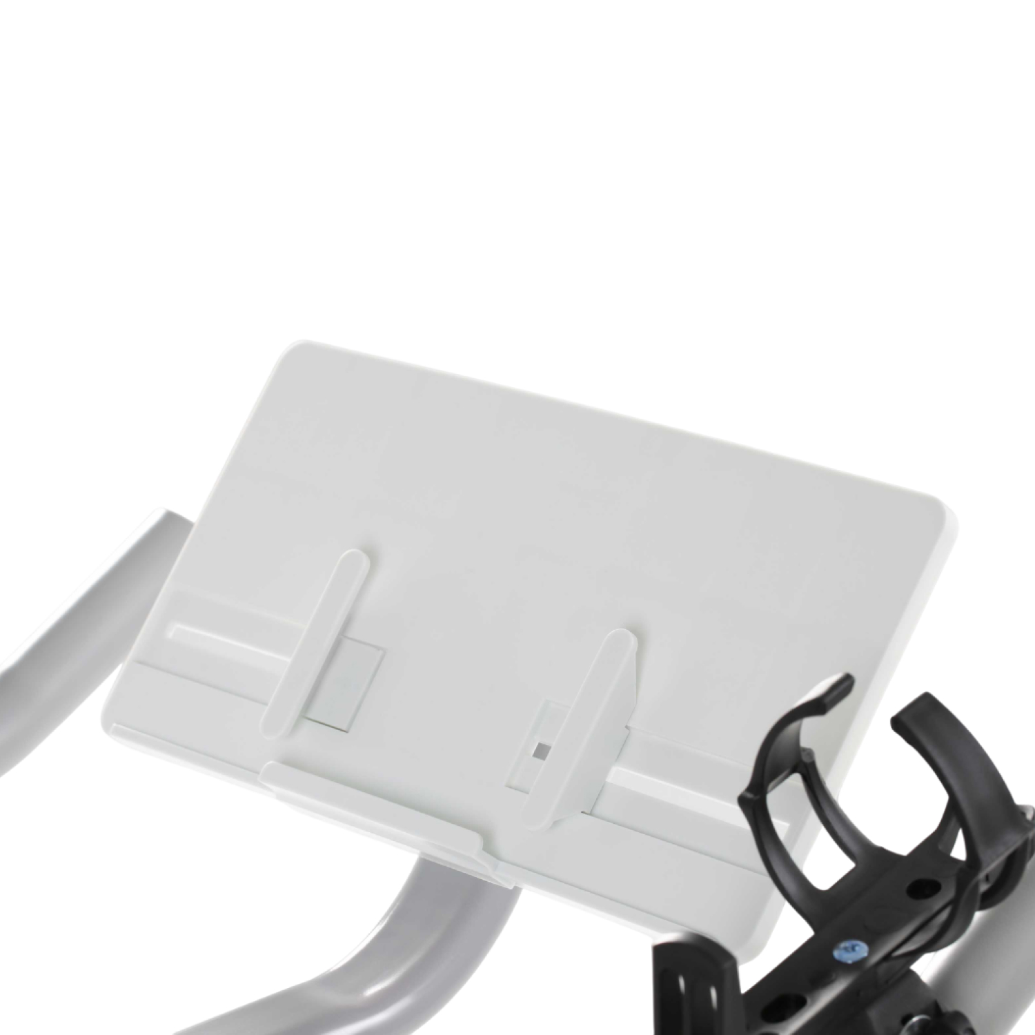Профессиональный руль велотренажора с разными видами хвата и покрытием, устойчивым к скольжению и поту, гарантирует удобство и безопасность в процессе тренировки. Регулировка руля по высоте дает дополнительное удобство и разнообразие. Транспортировочные ролики помогают быстро и с легкостью перемещать тренажер в нужное для вас место, а подставка под планшет и держатель для бутылки сделают ваши тренировки ещё более комфортными.