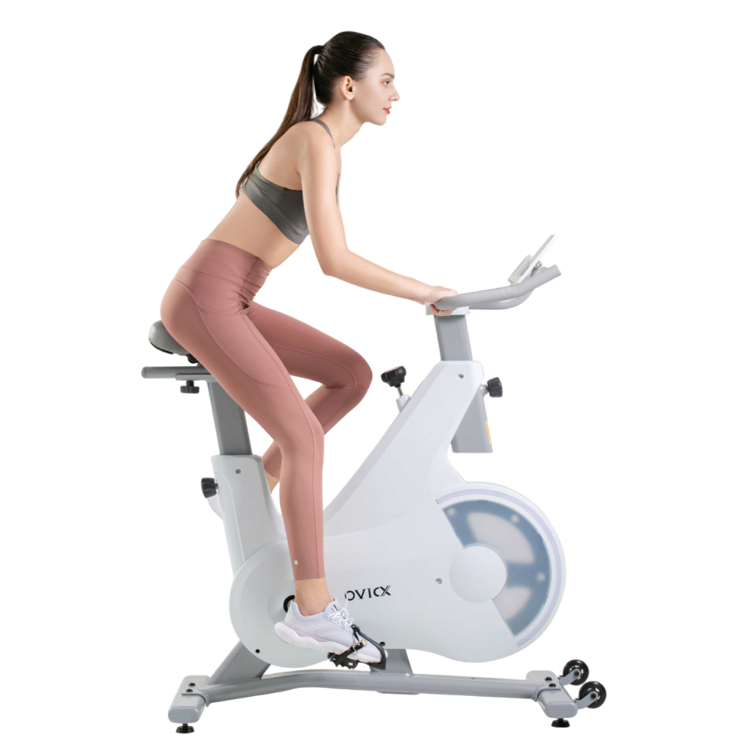 Спин-байк DFC OVICX Q210 белого цвета — отличный вариант для тех, кто желает проводить качественные кардио-тренировки прямо у себя дома, имитируя катание на настоящем велосипеде. Тренировки на спин-байке помогают укрепить ноги, ягодицы и живот, улучшить кардиореспираторную систему и сбросить вес.