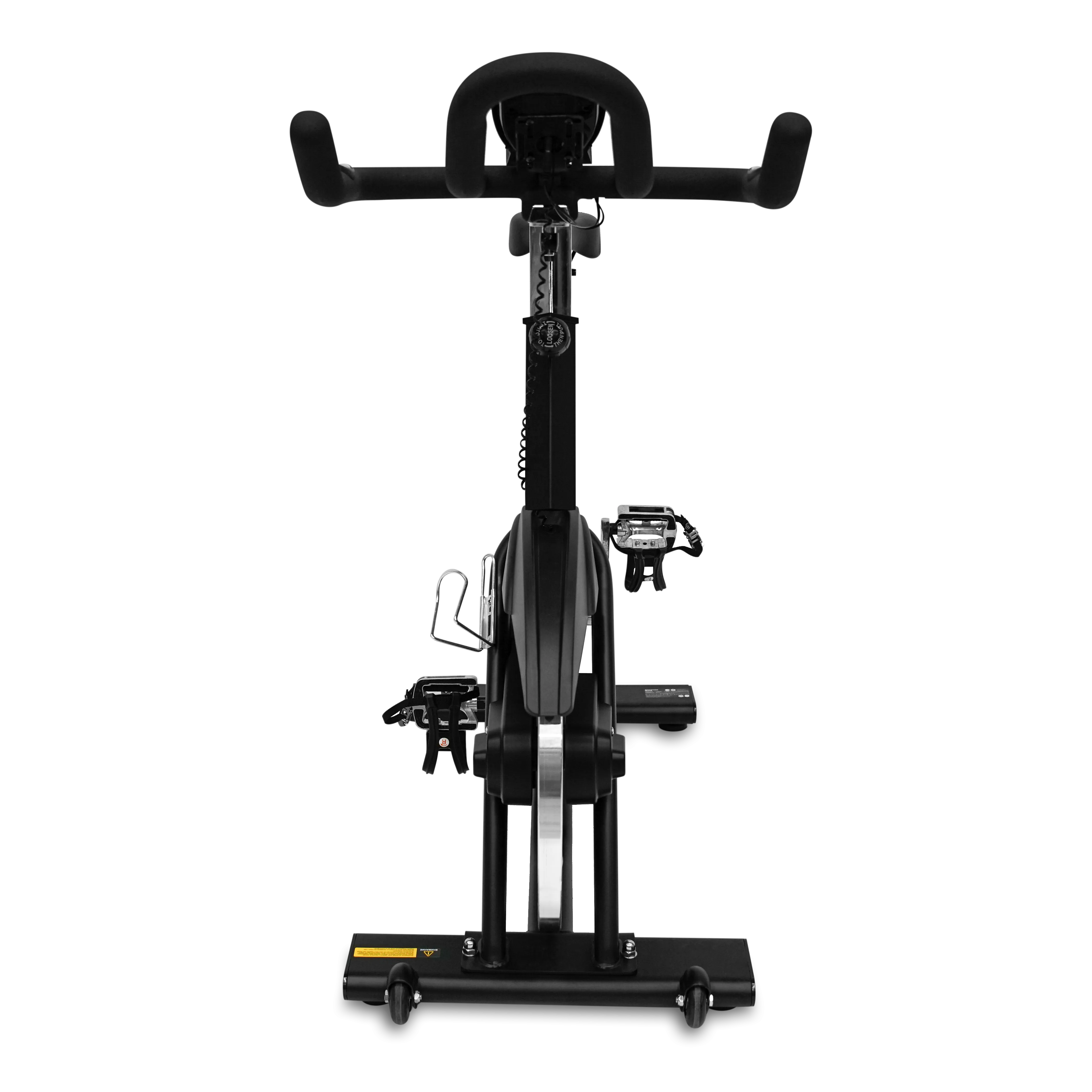 BRONZE GYM INSPIRE - профессиональный спин-байк для клубных тренировок в режиме максимальных нагрузок. Привод INSPIRE с магнитной системой нагружения является самой прогрессивной разработкой в биомеханике спин-байков и обеспечивает самую высокую степень эффективности и комфорта. Усиливает великолепный биомеханический эффект маховик с инерционным весом 20 кг. Встроенный приемник для беспроводной передачи частоты сердечного ритма, частота которого составляет 5 кГц,необходим нагрудный датчик (приобретается отдельно) BRONZE GYM INSPIRE отлично проходит так называемый "Тест на 6 часов" (проверка равномерности распределения нагрузки при педалировании, проводится в положении стоя; как правило, большинство спин-байков "проваливаются" (скорость увеличивается, нагрузка падает) при движении шатуна из верхнего положения в нижнее). Важнейшую роль в биомеханике играет рама. Мощный стальной профиль из легированной стали с общим весом изделия 53 кг является одним из самых устойчивых среди спин-байков. Рама надежна, не подвержена деформации и отлично защищена порошковой краской от коррозии. Подседельный и рулевой штырь, выполненные из высокопрочного стального профиля с надежным хромированным покрытием, регулируются во всех возможных положениях и подходят для пользователей практически любого роста и веса. На них не остается царапин при смене положения сидения или руля, они долговечны, недеформируемы и абсолютно устойчивы к воздействию пота. Само сиденье наполнено плотными подушками, выполнено в эргономичной форме и аналогично тем сидениям, который используются на спортивных велосипедах. К числу других преимуществ BRONZE GYM INSPIRE относятся быстро настраиваемые компенсаторы неровностей пола, износостойкие полиуретановые транспортировочные ролики и держатель для бутылки. Многопозиционный руль с подлокотниками, полностью закрытый от влаги прорезиненной полиуретановой защитой, дает возможность принять спортивное "шоссейное" положение. Помимо всего прочего, здесь стоят отличные педали. Они выполнены по технологии "Toe clip" (система рамок и ремешков на педали для крепления ноги). Занимайтесь с удовольствием на правильном оборудование от BRONZE GYM