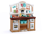 Возраст: 2+. Кухня оснащена: микроволновой печью, духовкой, плитой (Требуется 2 батарейки АА), холодильником, светильником (требуется 3 батарейки ААА), радио-телефоном (требуется 2 батарейки ААА), декоративной полкой для специй,подвесные крючки для столовых приборов, корзинами для фруктов и овощей. В комплекте: набор кухонных аксессуаров 24 предмета. Производитель: США