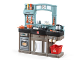 Возраст: 2+. Компактная кухня, которая легко впишется в домашнюю обстановку. Комплектация: плита с имитацией огня и забавными звуками, раковина, духовка, крючки, полочки, ящик для хранения; корзина для хранения овощей и фруктов; декоративный держатель для тарелок, также в комплекте 25 аксессуаров (тарелки, столовые приборы и др. посуда). Требуется 2 батарейки АА (в комплект поставки не входят). Производитель: Step2 (США)