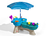 Возраст: 1,5+. Для улицы и помещения. Состоит из двух емкостей на разном уровне, соединенных между собой переливом. Игровая зона поднята на уровень рук ребенка; В комплект входят аксессуары в количестве 11шт., зонт. Вместимость емкостей: верхний ярус 8 литров воды, нижний 12 литров. Размеры столика :57х110х64см Вес:8кг. Габариты коробки: 72.4 x 95.6 x 27.9 cm 8.2 kg.