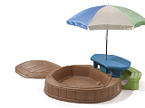 Возраст:2+. Крышка песочницы, защищает от плохой погоды и загрязнения. Можно использовать, как бассейн, оснащена сливом воды
