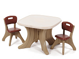 Забавная стилистика стола и оргигинальные цветовые решения. В комплекте: стол и 2 стула. Максимальная нагрузка на стул 34 кг. Размер: ВхДхШ: Стол:50х69х69, Стул:53х34х33см. Вес:10кг. Производитель: Step2(США).