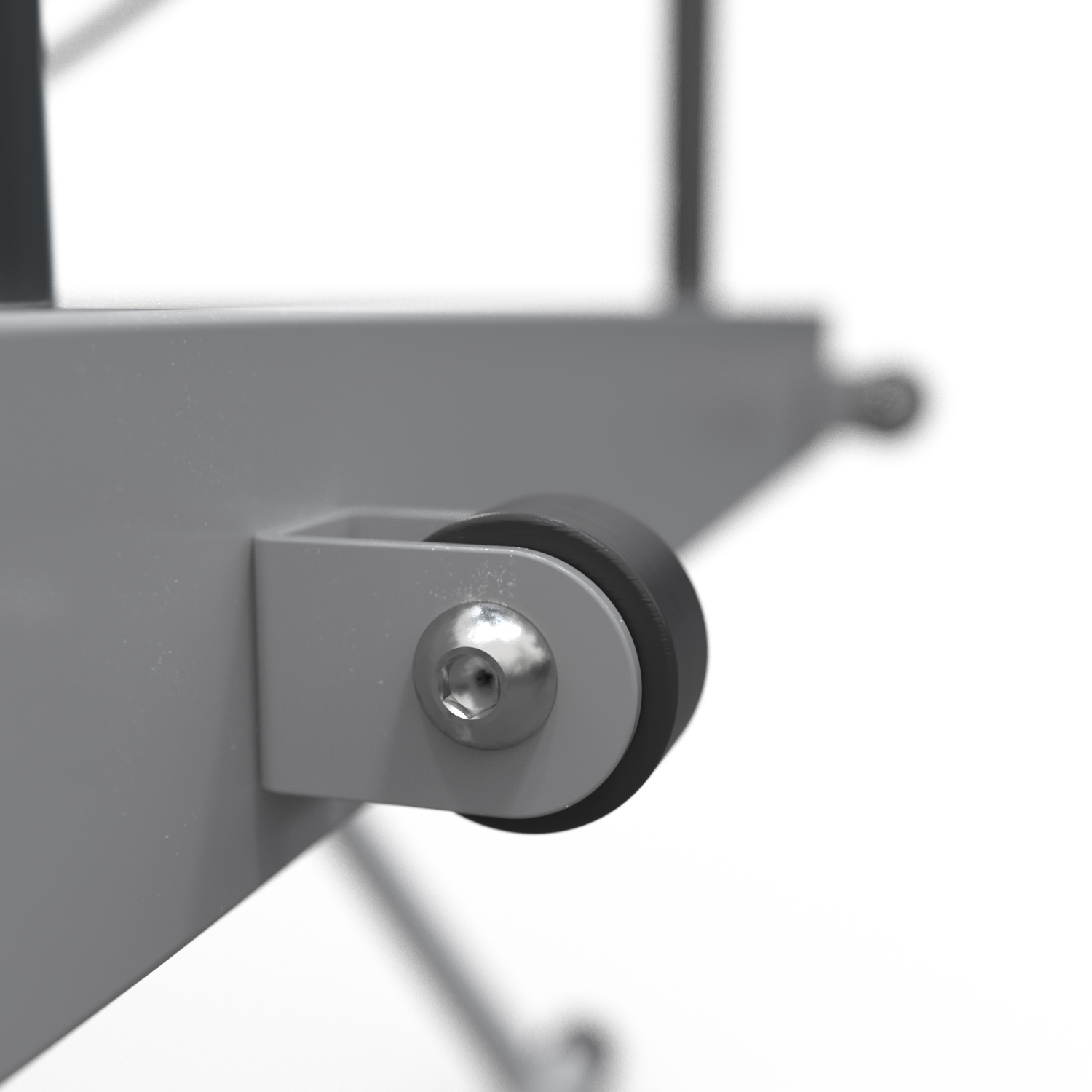 Максимальный вес пользователя до 130 кг делает этот стол подходящим для людей с разной физической подготовкой. Транспортировочные колеса облегчают перемещение стола, а складная конструкция позволяет быстро и легко его собрать. Механическую нагрузку создают ремни-утяжелители, закреплённые между столом и рамой. Максимальная нагрузка составляет 25 кг (5 ремней по 5 кг). Для регулирования нагрузки нужно снять один или два ремня или закрепить дополнительные.