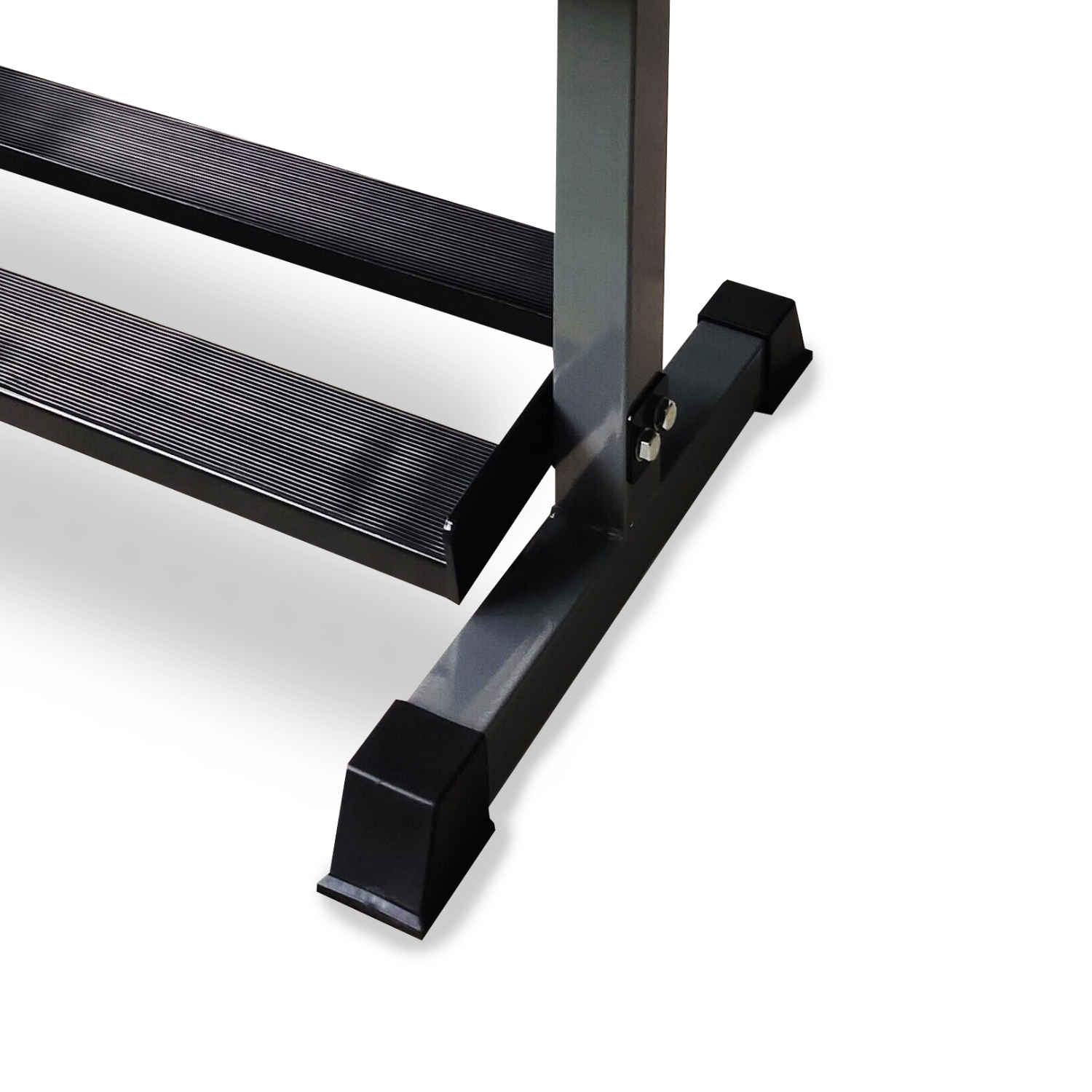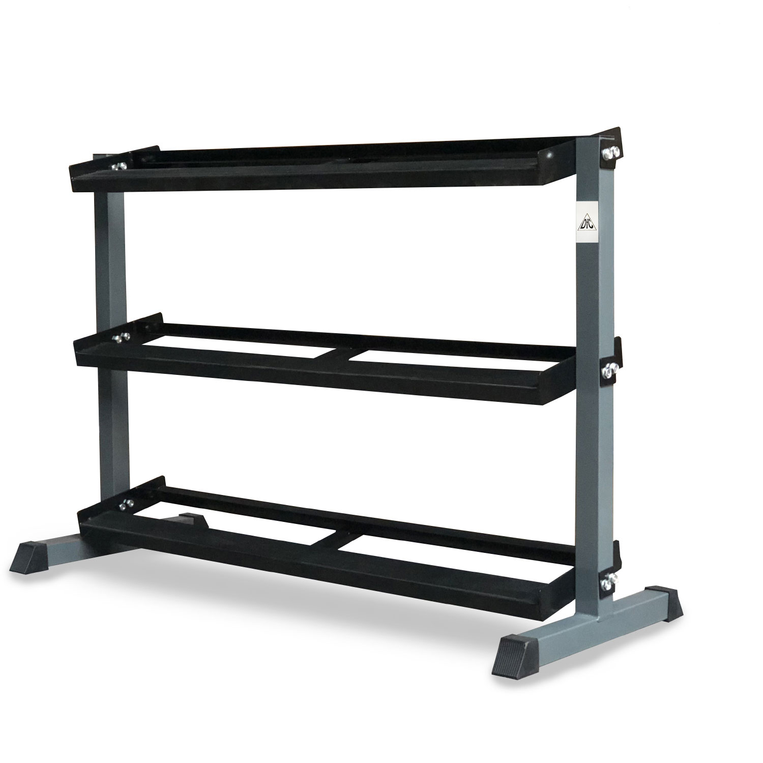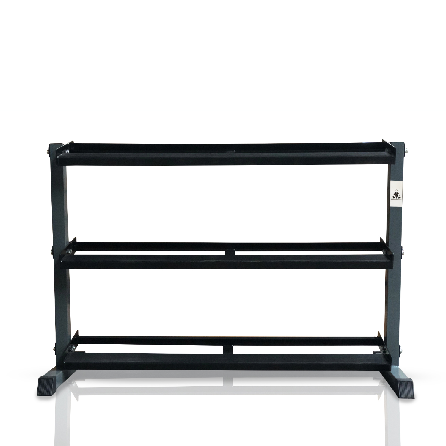 Стойка для хранения профессиональных гантелей DFC из серии POWERGYM RA070 чёрного цвета с серым корпусом для домашнего использования.