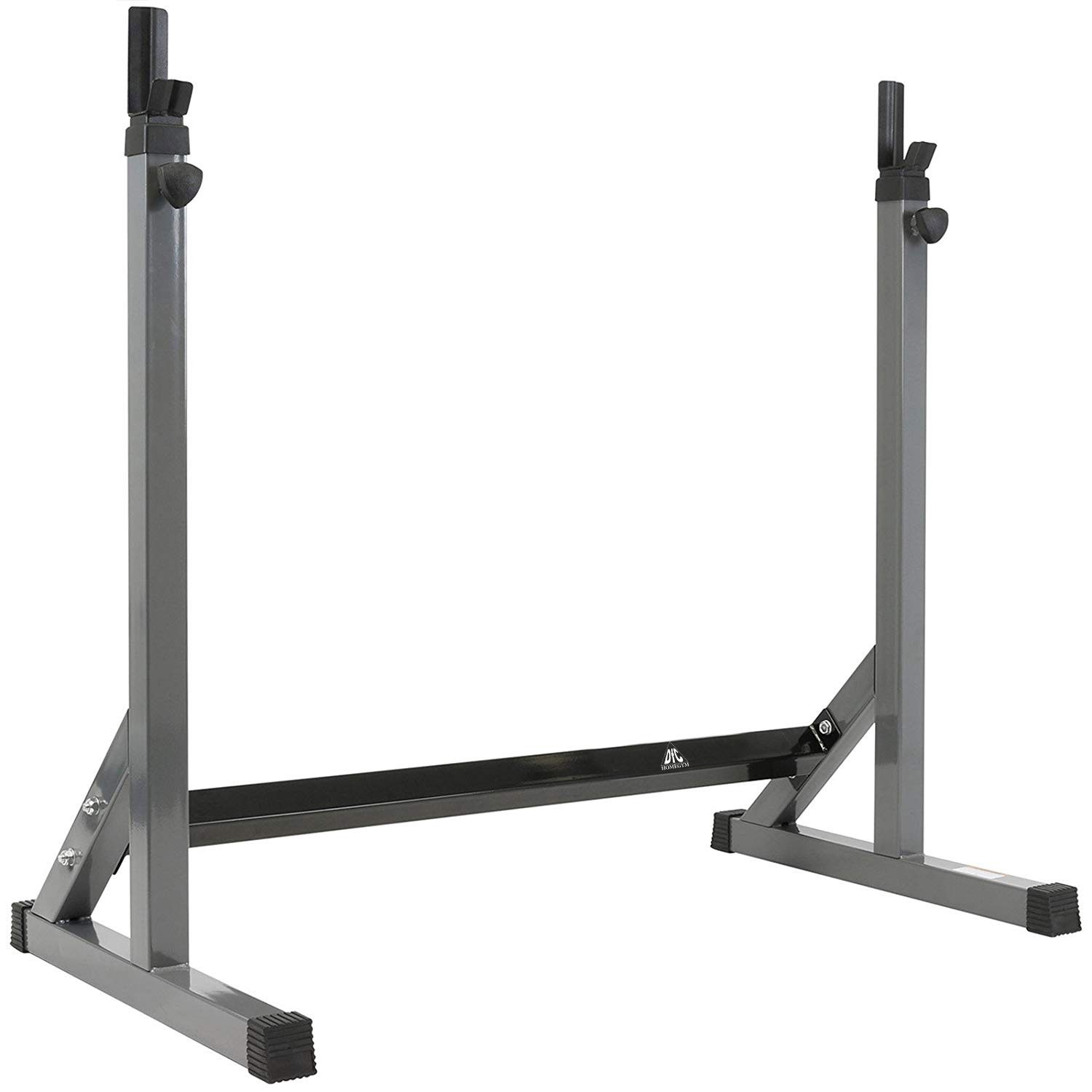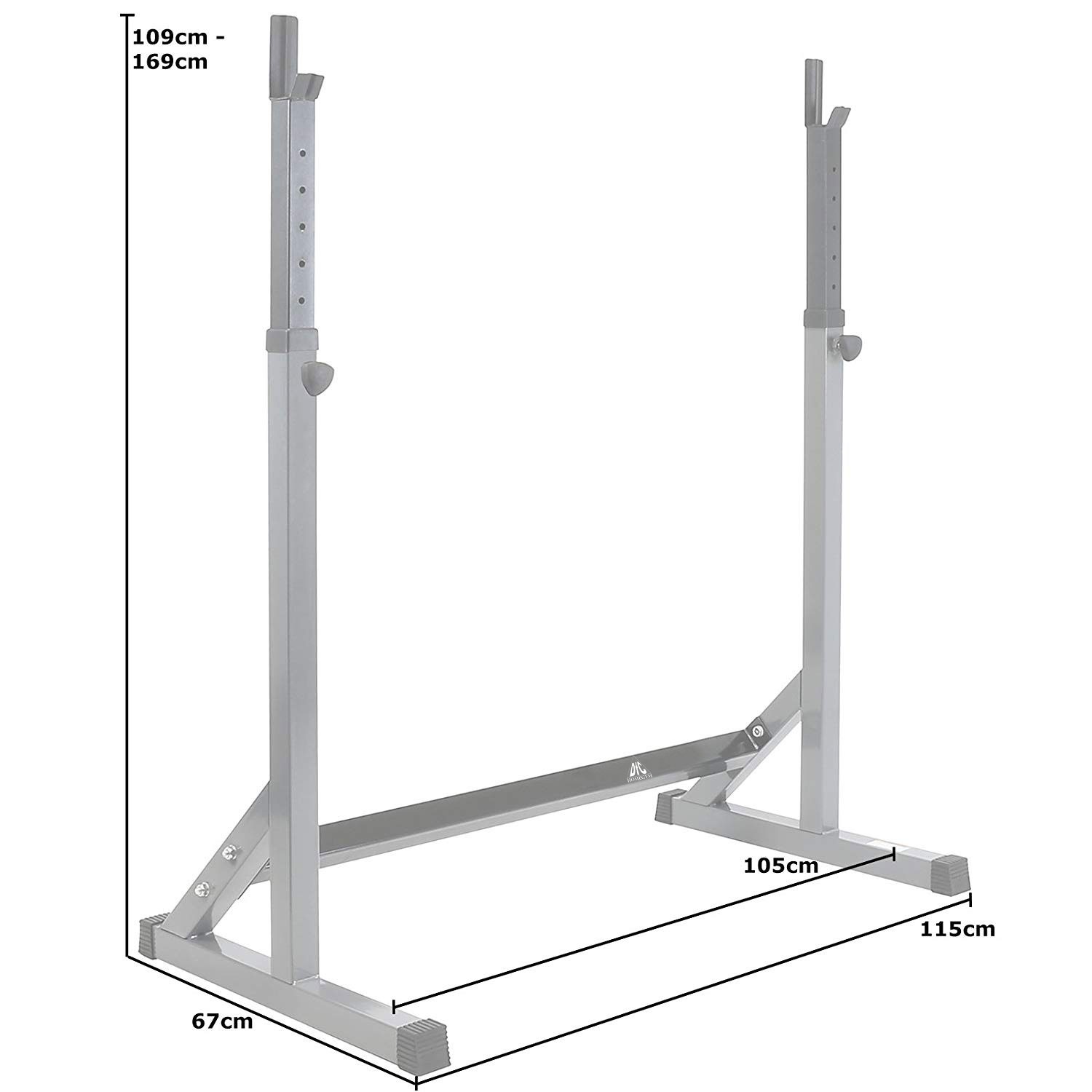 Тренажер со свободными весами. Позволяет выполнять широкий спектр упражнений со штангой: приседания, жим и другие. Держатели под штангу регулируются по высоте в диапазоне от 109 до 169 см. 15 уровней с шагом 5 см. Стойки под штангу расположены на расстоянии 115 см, не регулируются. Рама стойки изготовлена из высококачественного стального профиля. Порошковая покраска рамы в практичный черно - серый цвет. Резиновые ножки для надежной установки на полу. Не царапают поверхность.