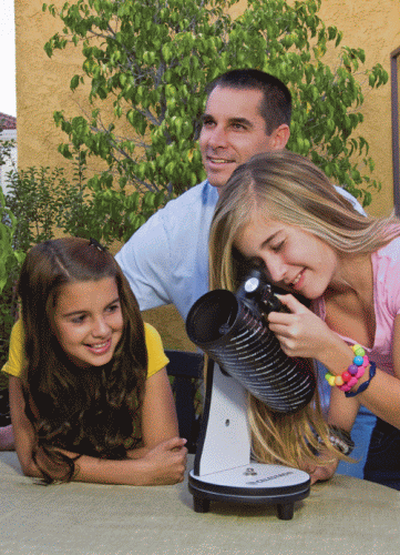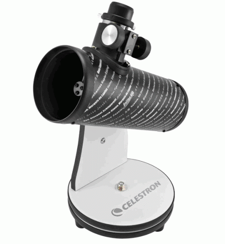 Настольный рефлектор Ньютона в стильном и компактном корпусе. Создан в посвящение международному году астрономии; удобен для новичков и является отличным подарком. Телескоп имеет апертуру 76 мм и 300-миллиметровое фокусное расстояние. Максимальная кратность – 152х. Оптическая труба установлена на монтировке Добсона. Имеет стандартный фокусировочный узел 1,25"; в комплекте идут два окуляра диаметром 4 и 20 мм.